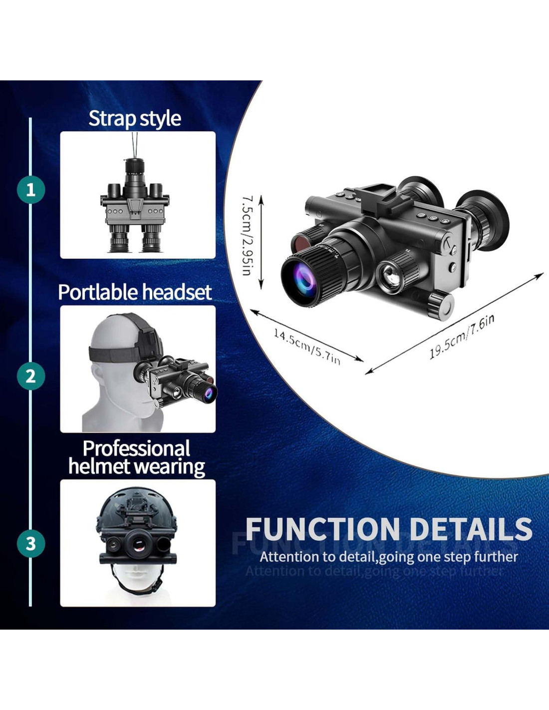 - Visibilidad Excepcional: Las Gafas de Visión Nocturna Montadas en la Cabeza ofrecen visión tanto de día como de noche, con una distancia de observación diurna que varía de 0.5 metros a infinito y una distancia de visión nocturna de aproximadamente 600 metros.