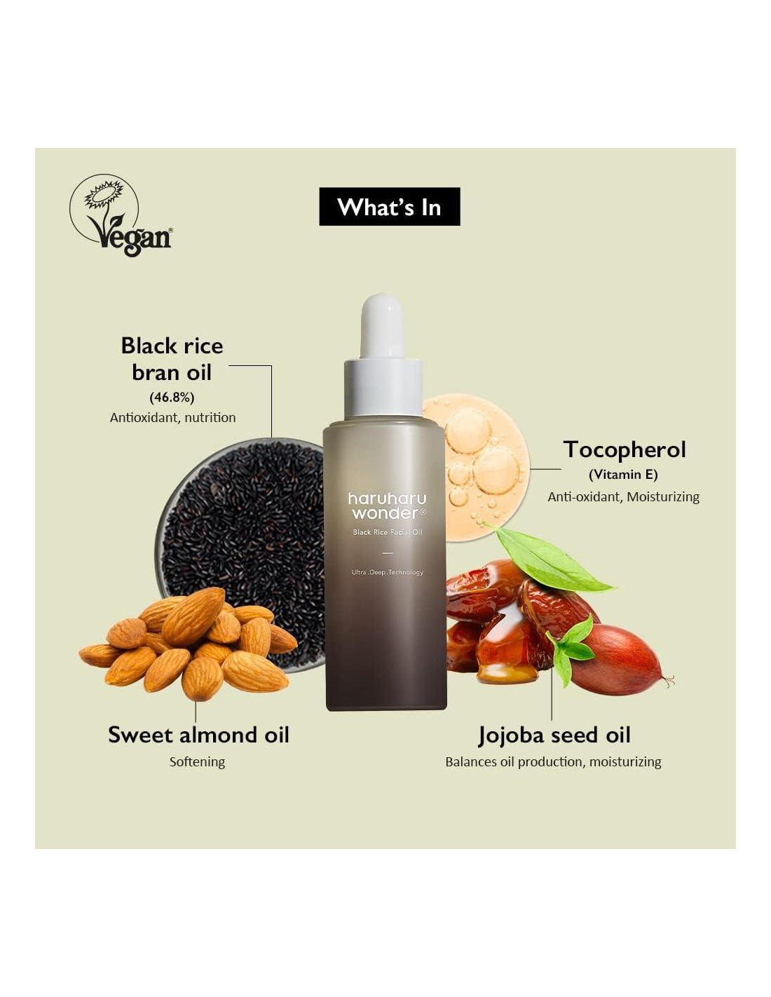 - NUTRICIÓN NATURAL: Sumérgete en la encantadora mezcla de aceites de salvado de arroz negro, almendra, semilla de jojoba, semilla de camelia japonesa y semilla de girasol. Esta mezcla contribuye a una piel naturalmente radiante, abrazando el encanto de la naturaleza.