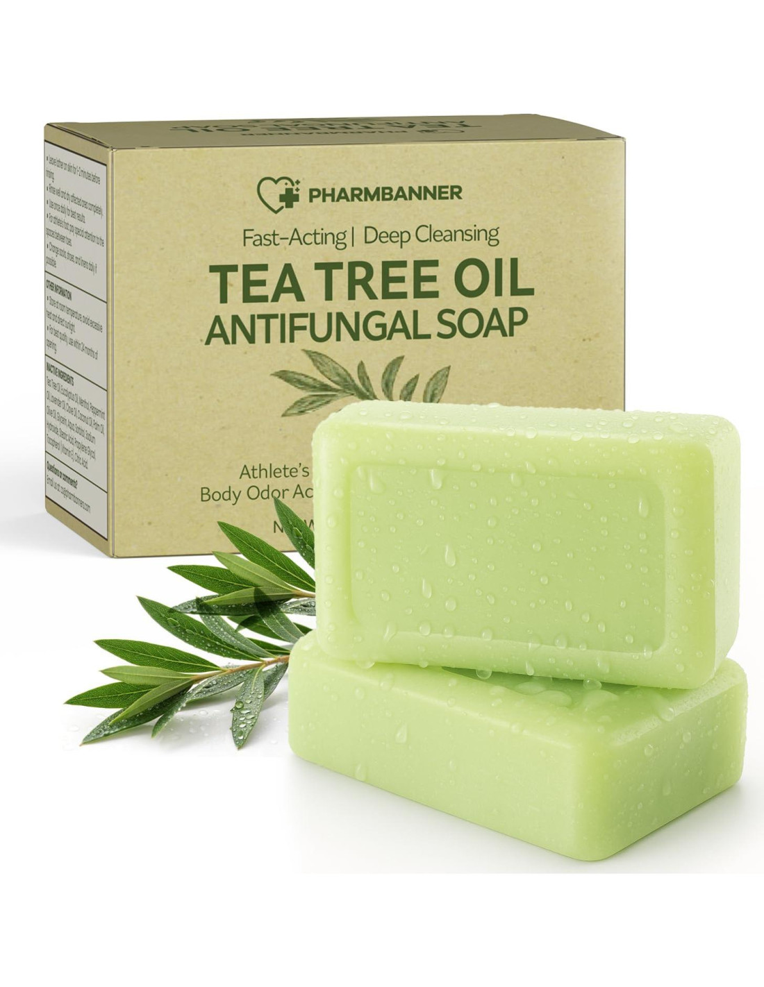 ¿Qué problemas de piel ayuda a resolver esta Barra de Jabón Antifúngico de Árbol de Té? Ayuda a aliviar la picazón, el enrojecimiento y la irritación del pie de atleta, picazón en la ingle, tiña, foliculitis y acné. Con 1% de Clotrimazol y aceites esenciales, apoya suavemente una piel clara y de aspecto saludable. ¿Puedo usar este jabón en mi cara y áreas sensibles? Sí, este jabón está diseñado para uso en todo el cuerpo, incluyendo cara, pecho, ingle y pies. Está hecho con botánicos calmantes como aloe y aceite de lavanda para ser suave con la piel sensible. ¿Este jabón secará mi piel? No, está hecho con ingredientes hidratantes como aceite de coco y manteca de karité que hidratan mientras limpian. Está libre de sulfatos agresivos, por lo que tu piel se siente limpia, no despojada. ¿Este jabón ayuda con el olor corporal y las bacterias? Sí, los aceites de árbol de té, eucalipto y menta combaten naturalmente el olor y las bacterias, ayudando a reducir el olor corporal mientras deja tu piel fresca y limpia. ¿Qué debo hacer si no estoy satisfecho con la Barra de Jabón Antifúngico de Árbol de Té de PHARMBANNER? Si por alguna razón no estás satisfecho con tu compra, por favor contacta a nuestro equipo de atención al cliente. Estamos comprometidos a abordar cualquier inquietud de manera rápida y asegurarnos de que estés completamente satisfecho con tu pedido.