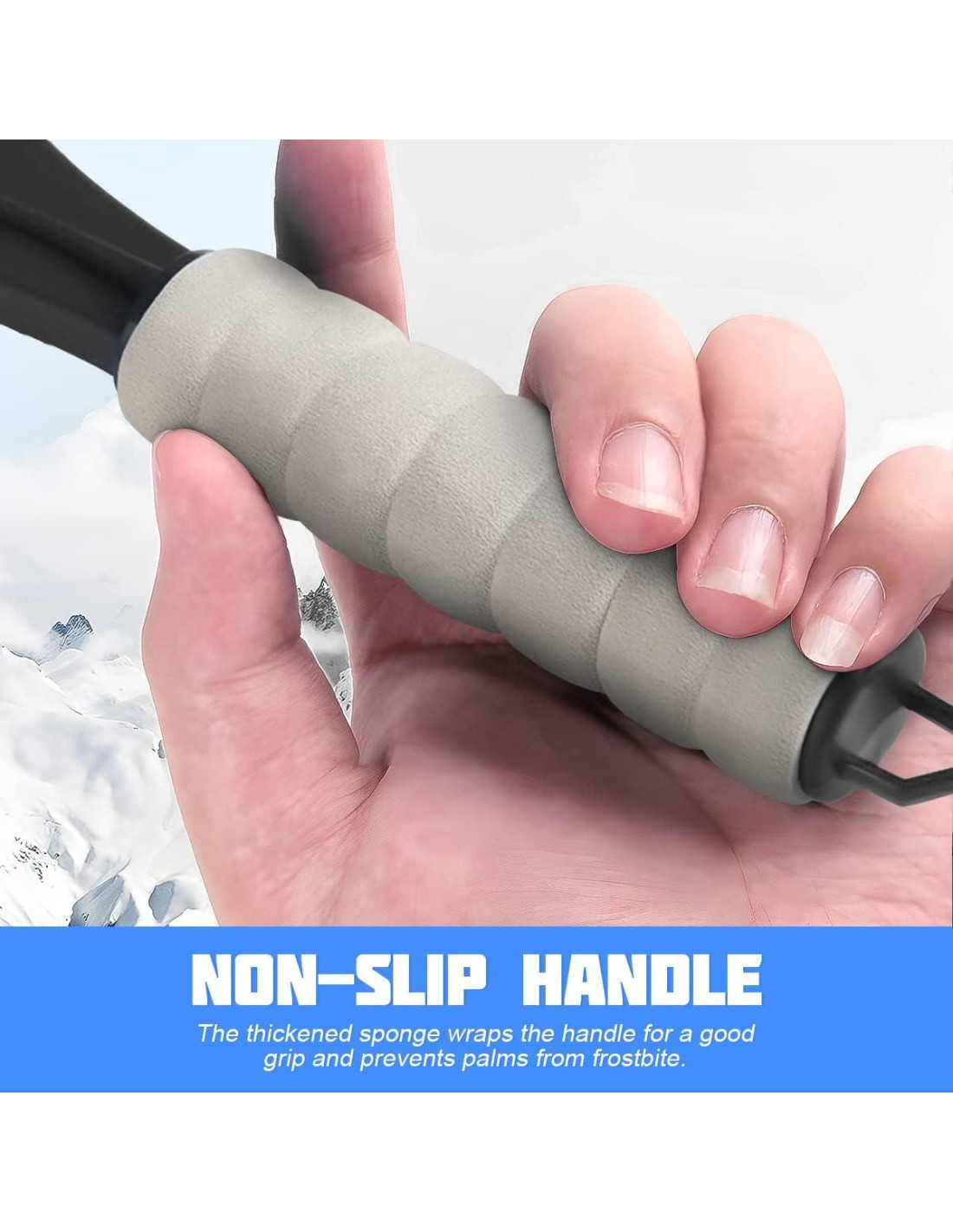 - [Material Confiable] : Con mango de espuma EVA, agarre cómodo y cálido, extra grueso, antideslizante y no daña tus manos, este agarre fuerte lo hace más cómodo para que tanto hombres como mujeres lo usen. Diseñado con un mango de espuma cómodo, incluso con guantes, también puede promover un agarre seguro, pala de nieve de material PP para ayudarnos a despejar la nieve de manera más eficiente, conveniente y no daña el coche.