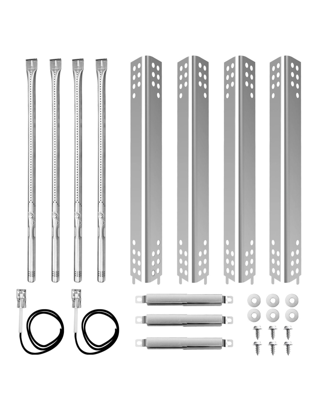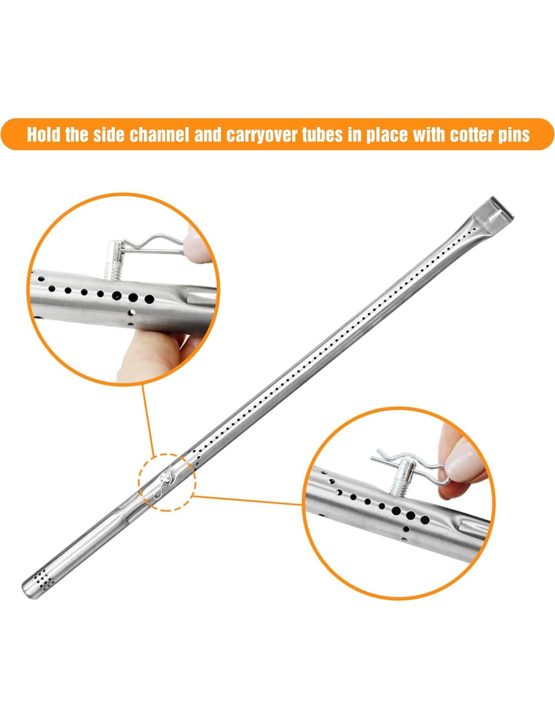 - DIMENSIÓN Y MATERIAL - Las piezas de repuesto para la parrilla Charbroil Performance de 4 quemadores incluyen: 4 x Quemadores: 17 3/4" (45.09 cm) x 3/5" (1.52 cm), Número de parte original: G470-5200-W1; 4 x Placas de Calor: 16 15/16" (43.02 cm) x 2 1/12" (5.08 cm), Número de parte original: G470-0004-W1; 3 x tubo cruzado ajustable: extendido de 5" (12.7 cm) a 9.5" (24.13 cm); 2 x encendedores; tornillo a juego. Estas piezas de parrilla char-broil están fabricadas con acero inoxidable de alta calidad, asegurando robustez y durabilidad a largo plazo