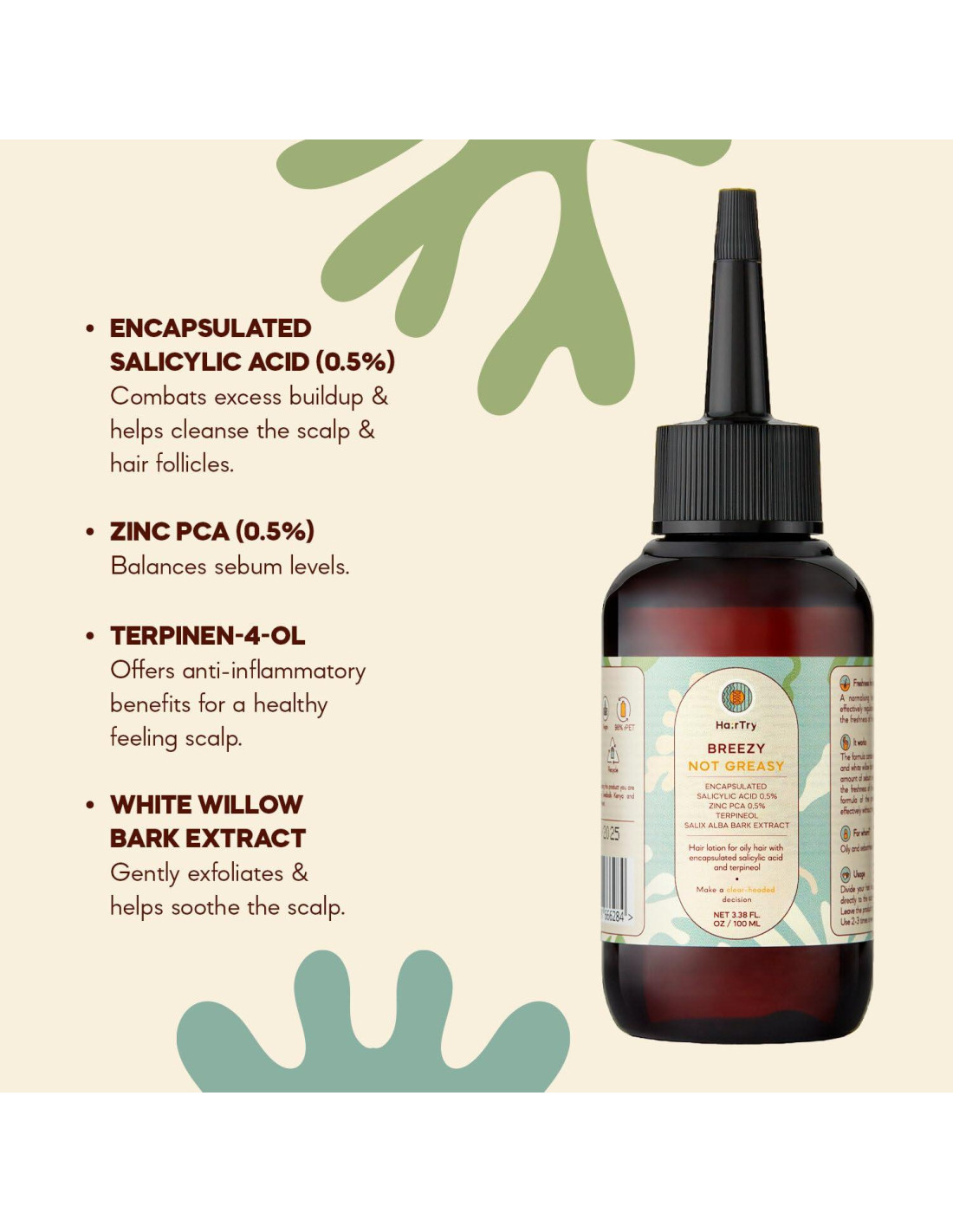 - Empaquetado en una botella de rPET reciclado al 98%, Breezy Not Greasy se alinea con los estándares de consumidores conscientes, apoyando el plástico de desecho oceánico para un planeta más limpio. Con este producto, estás respaldando prácticas sostenibles y excelentes estándares de cuidado personal.