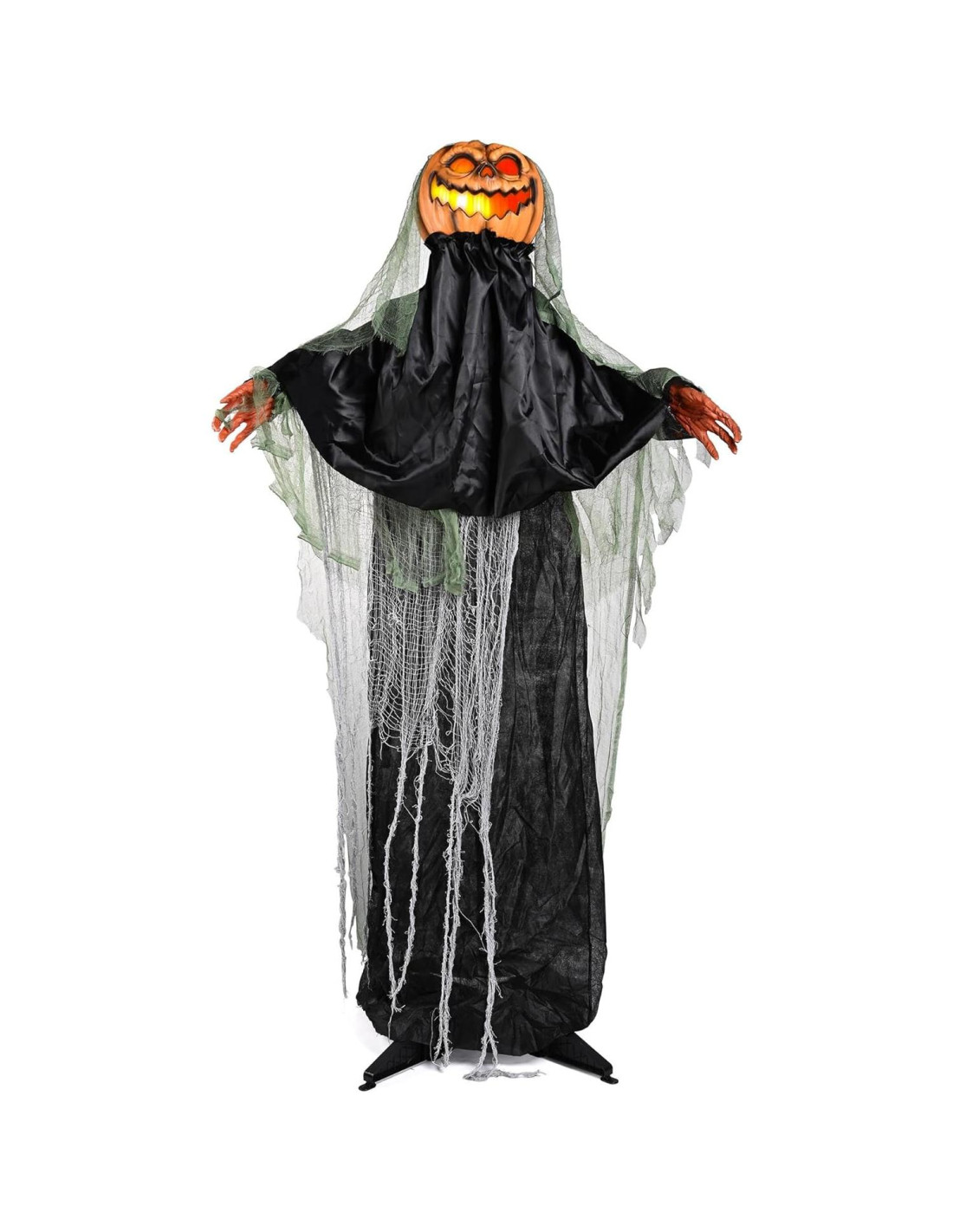 - Activado por Sonido y Tacto - La Calabaza Animatrónica de 1.68 m de pie está activada por sonido y tacto para mover sus brazos e iluminar la cabeza de calabaza, y emitiendo un sonido de gemido escalofriante para asustar a los trick-or-treaters, gran adición a tu espacio mientras crea una atmósfera espeluznante para la fiesta de Halloween