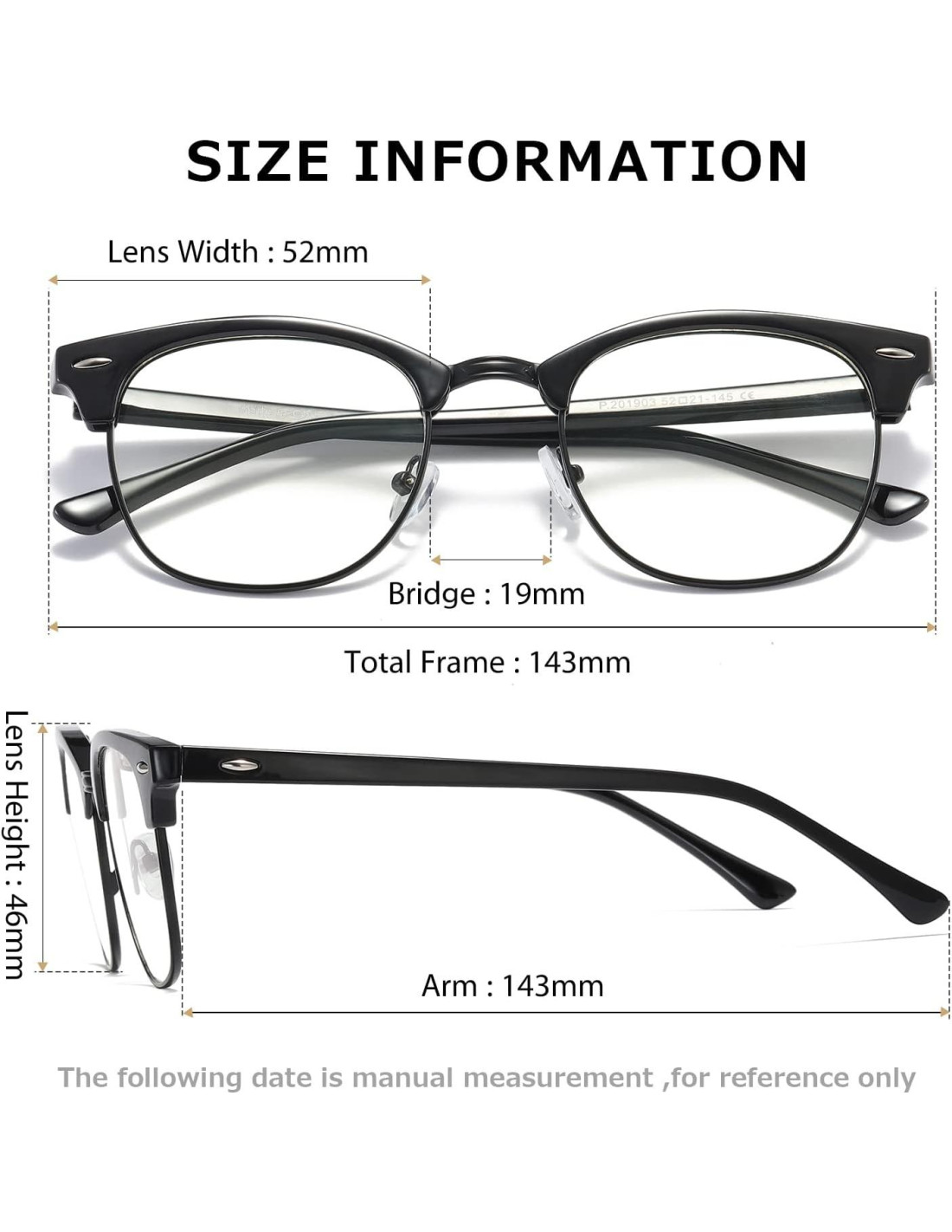 - BLOQUEADOR DE LUZ AZUL Y LENTES REEMPLAZABLES: Reduce los síntomas de fatiga ocular durante la exposición prolongada a la computadora. Estos marcos son mejor utilizados como lentes interiores para largas horas de uso de computadora con el fin de mantener patrones de sueño naturales y producción ocular. Las lentes originales no prescritas pueden ser reemplazadas por lentes progresivas en cualquier tienda.
