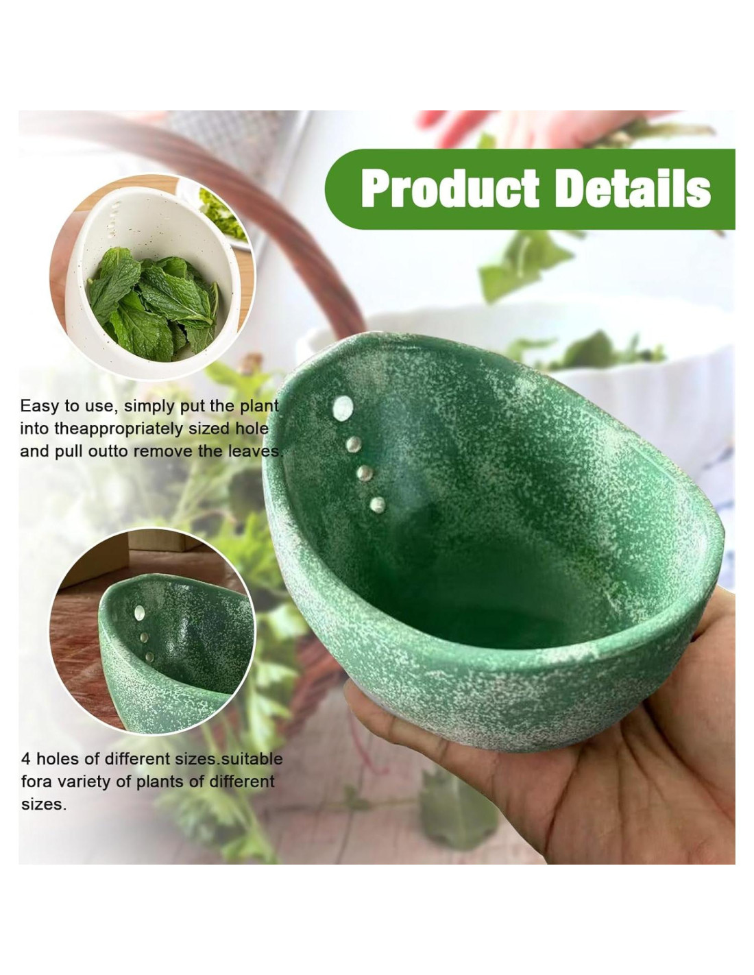 - Eliminación Rápida de Hojas Hecha Simple: Este tazón deshojador de hierbas de cerámica cuenta con un diseño redondeado de múltiples agujeros para deshojar fácilmente hojas de hierbas como romero o col rizada, ahorrando tiempo de preparación y mejorando la eficiencia en la cocina