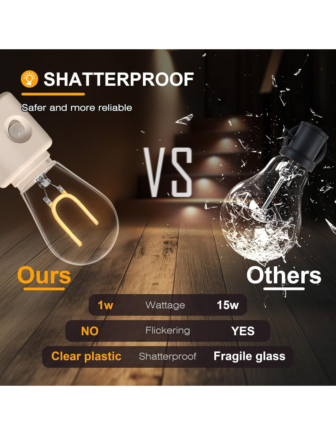 - Seguro y a Prueba de Roturas - La luz de detección de movimiento enchufable es fresca al tacto, cuenta con una pantalla de plástico transparente a prueba de roturas, y simplemente se enchufa en cualquier toma de corriente estándar, lo que la hace segura para niños y mascotas