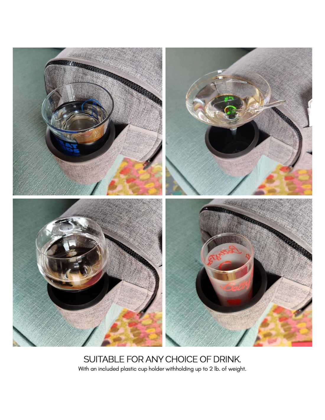 Nuestro organizador de sofá CupComfort es una adición versátil perfecta para tu sala de estar. Viene en 2 tamaños, puedes usarlo en una variedad de sofás diferentes. La versión de 6 pulgadas es una gran opción para tus reposabrazos reclinados más estrechos y sillones con al menos 5 pulgadas de largo, y la versión de 8 pulgadas es para todos los sofás, sillones reclinables y sillones con reposabrazos más anchos que comienzan desde 7.5 pulgadas (19,05 cm) y llegan hasta 9.5-10 pulgadas (24,13-25,4 cm) como máximo. Disfruta de la comodidad de tu sofá y aún así tener el espacio para descansar tu mano en la parte superior del reposabrazos sin preocuparte por derribar nada.