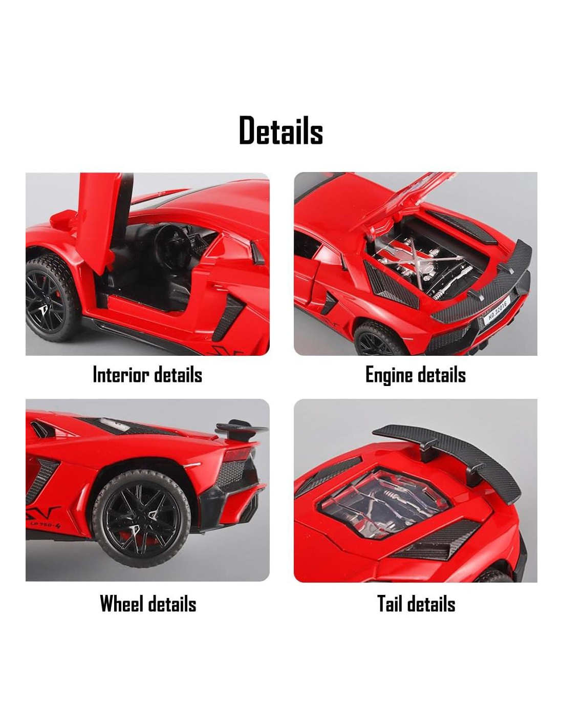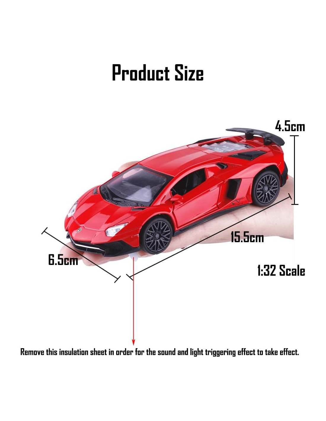 Modelo de Coche Juguete Lambo Rojo de Aleación Coleccionable Vehículos de Retroceso Diecast con Luz y Sonido Nota: 1, La batería está instalada en la parte inferior del coche. 2, Después de recibir el juguete, por favor saque la pieza de aislamiento en la parte inferior. Adecuado para el Festival: Halloween, Nochebuena, Navidad, Año Nuevo, Día del Niño, Aniversario, Cumpleaños, Pascua, etc. El paquete incluye: 1* Coche Die-Cast 1:32 3* Batería de Botón (Ya instalada en la parte inferior) (No incluye el destornillador)