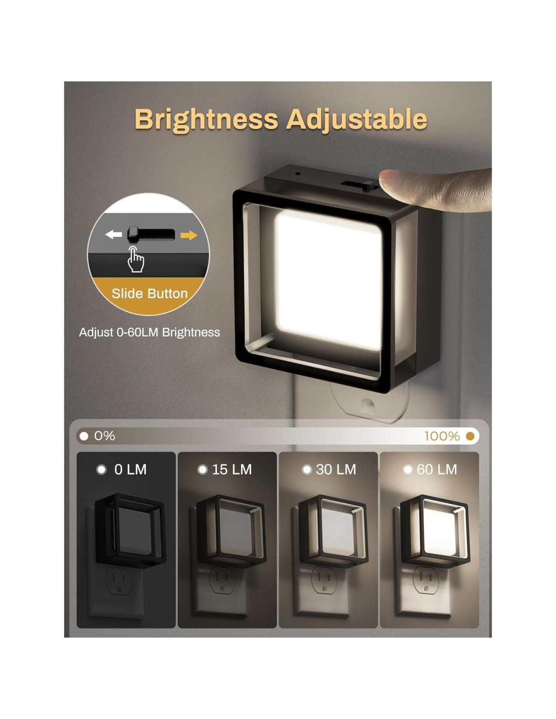 - BRILLO AJUSTABLE: Esta luz nocturna enchufable regulable tiene un brillo ajustable de 0lm a 60lm con un interruptor deslizante. Puedes elegir el brillo que desees para adaptarse a tus diferentes escenarios de uso.