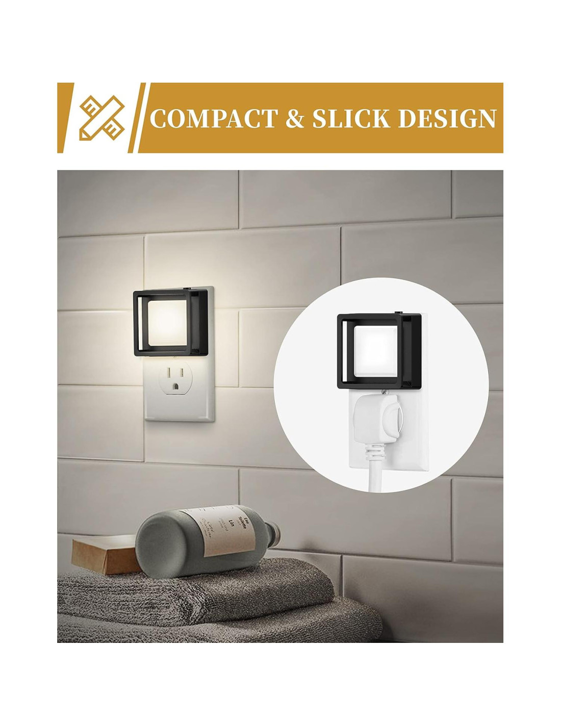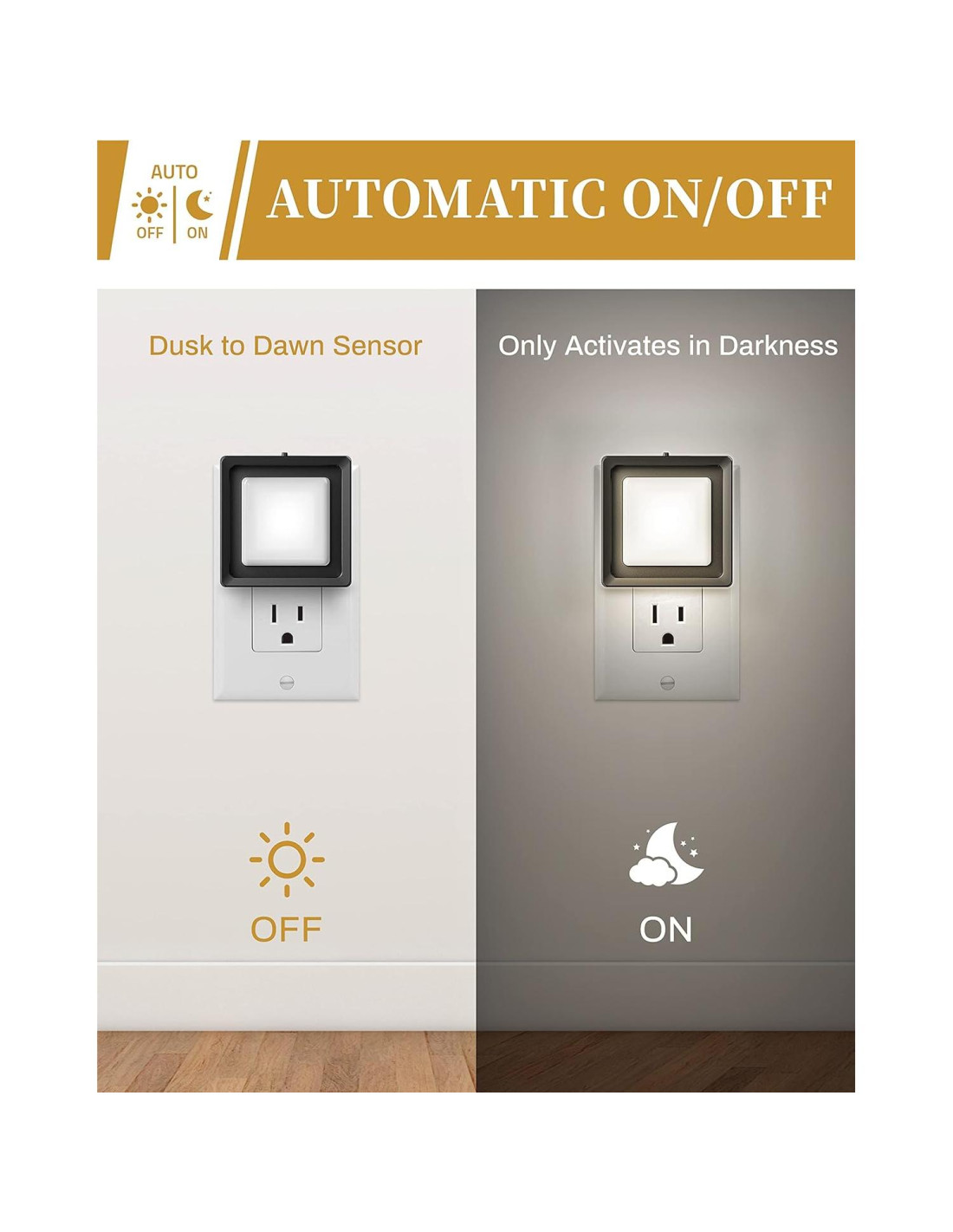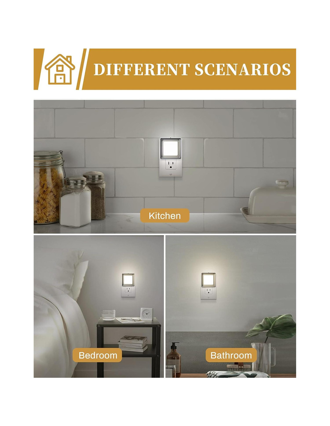 - DISEÑO DE LUZ NOCTURNA ENCHUFABLE: Las luces nocturnas que proporcionan un brillo más amplio en la oscuridad y dan suficiente luz para guiar tu camino al ir al inodoro o a buscar agua en la cocina por la noche. Iluminación de crepúsculo a amanecer.