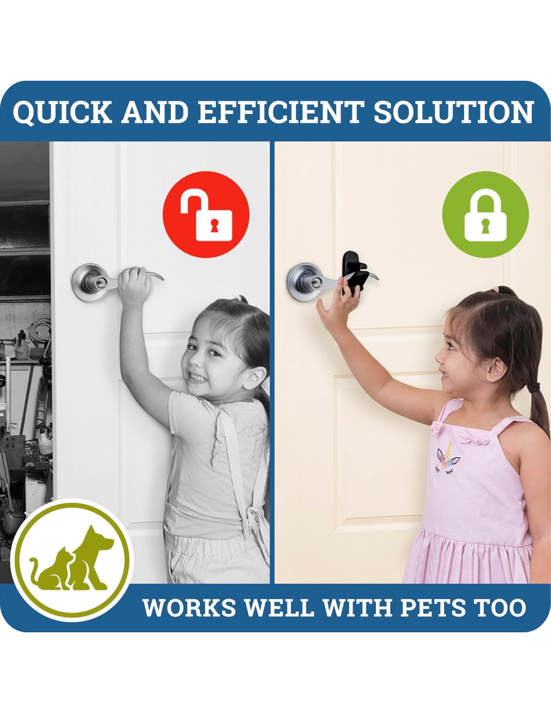 - ¡EL BLOQUEO DE PALANCA DE PUERTA DEFINITIVO que la mayoría de los niños no pueden abrir! Nuestro bloqueo requiere que un adulto presione botones en AMBOS lados del bloqueo para abrir y cerrar. Productos similares pueden ser fácilmente derrotados por los más pequeños.