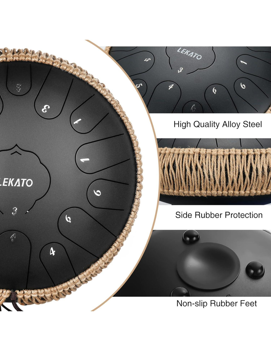 - 13 Pulgadas 15 Notas: Este tambor de acero tiene 15 notas en botón Do, nos permite tocar la mayoría de las canciones complejas. Puede cumplir con los requisitos profesionales y también es amigable para principiantes.