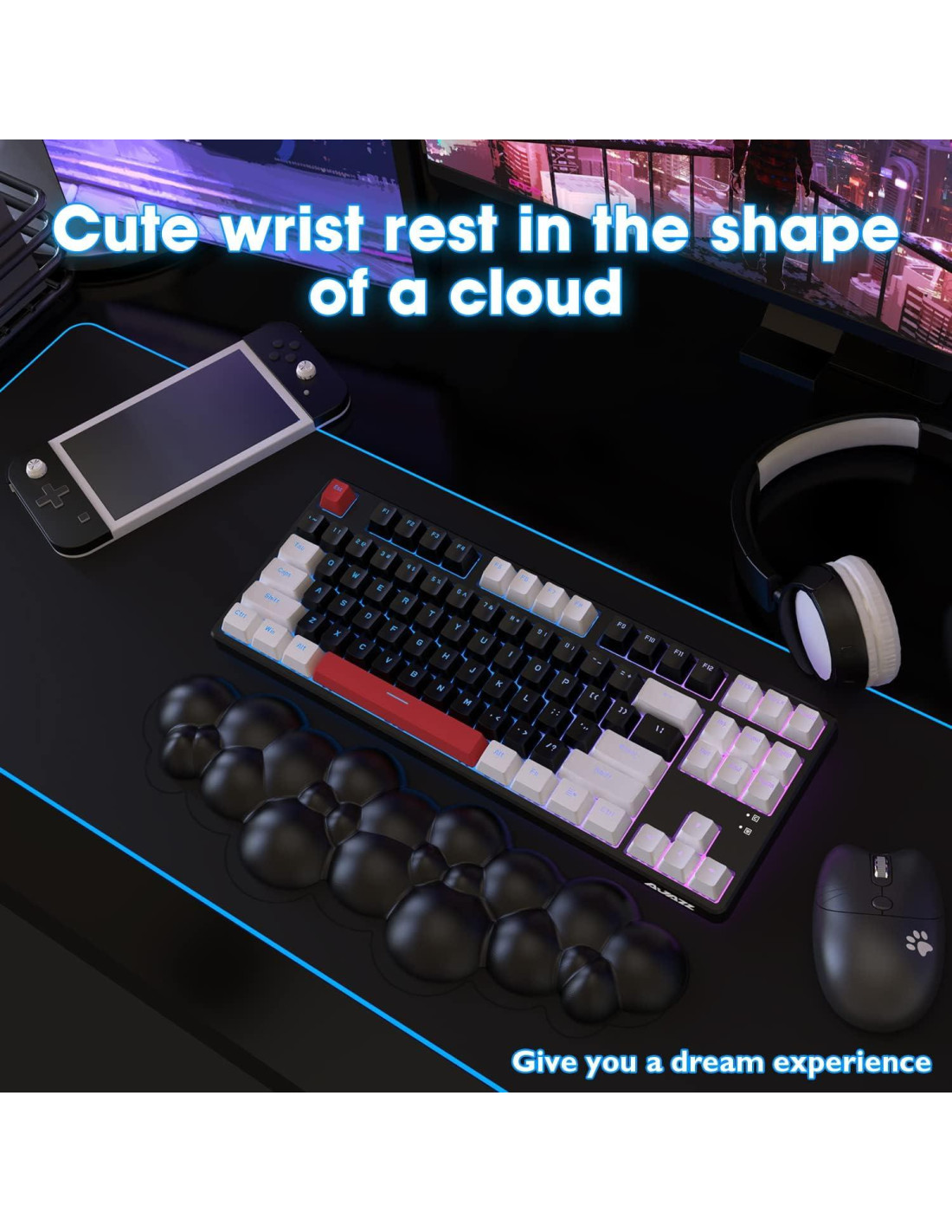 - Diseño único en forma de nube: El diseño en forma de nube del reposap muñecas para teclado se adapta mejor a tu mano. Mantiene tus muñecas en línea recta, no en un ángulo con el teclado. El nuevo diseño cóncavo-convexo permite que el aire circule más, evitando el uso sofocante a largo plazo y manteniendo la muñeca cómoda y seca. Nuestro diseño tiene un alma simple y feliz, se ve muy lindo y elegante, y es un compañero perfecto para trabajar y estudiar.