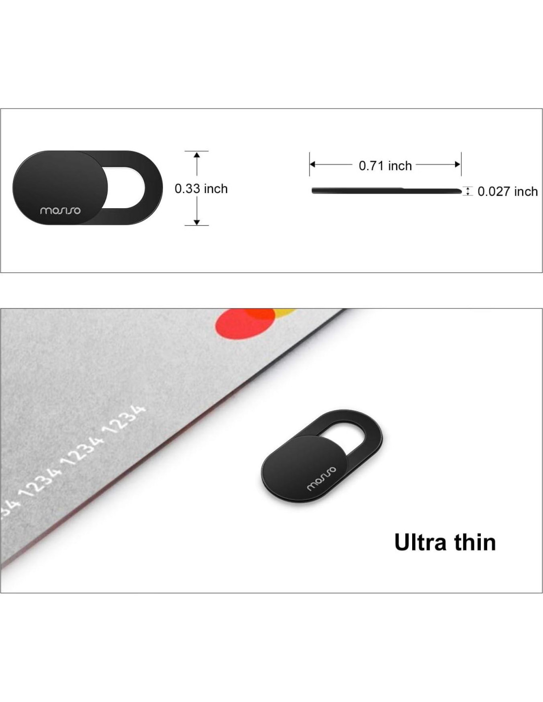- Dimensiones: 0.71 x 0.33 x 0.027 pulgadas (1.8 x 0.84 x 0.07 cm). La cubierta de webcam está especialmente diseñada para evitar que los hackers te espíen. Se desliza para abrirse cuando usas tu webcam, se bloquea en su lugar para asegurar que la cubierta no se deslice.
