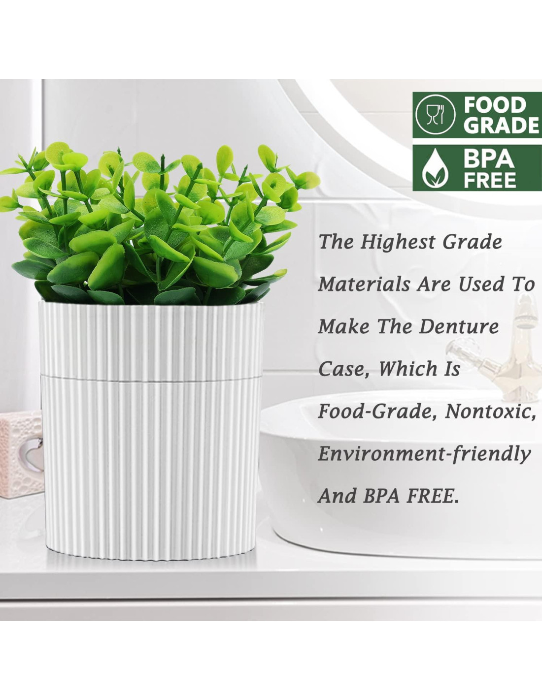 - EXCELENTE CALIDAD Se utilizan los materiales de la más alta calidad para fabricar el estuche para dentaduras, que es libre de BPA. La calidad de este producto es la mejor. Es resistente y estable, que puede ser utilizado entre -20 grados y 120 grados. Es normal que el eucalipto recién producido tenga un poco de olor, que desaparecerá después de 2 o 3 días.