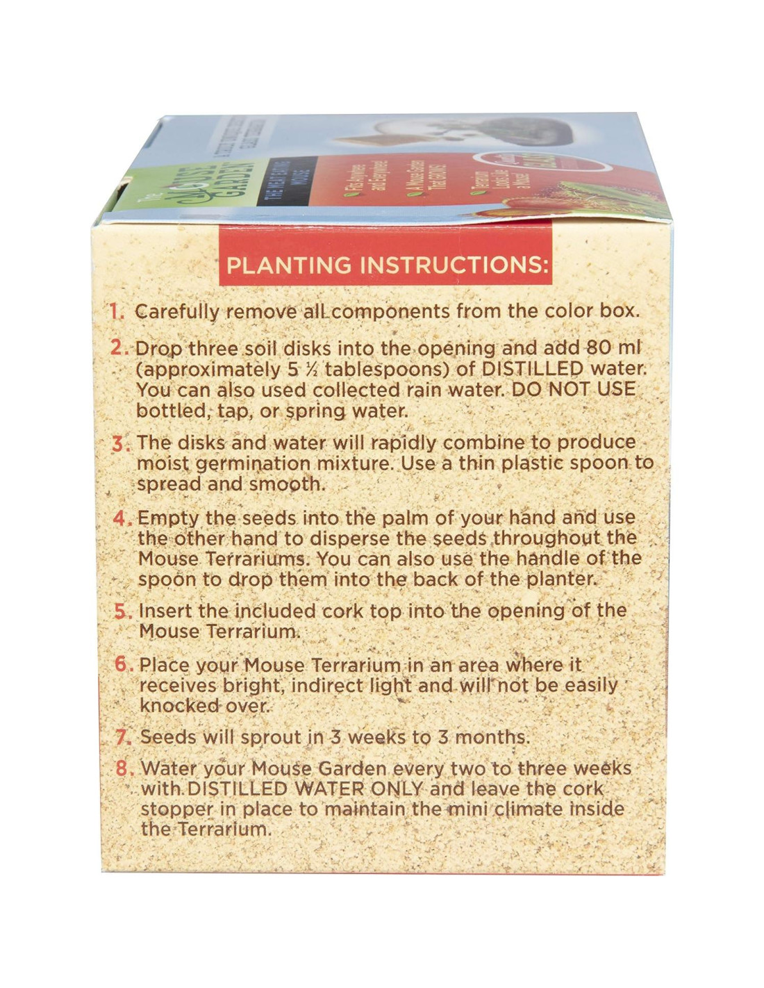 ¡El jardín de ratones, nombrado tanto por la herramienta informática indispensable como por la pequeña criatura que corretea! ¡Crea tu propio mundo en miniatura en un verdadero micro ecosistema! ¡El terrario de vidrio de alta calidad con sus pequeñas plantas se ve fantástico en cualquier lugar y se adapta a todos lados! ¡Seguro que iniciará una conversación! ¡Nuestros Jardines de Ratones requieren muy poco cuidado o mantenimiento y florecerán durante años!