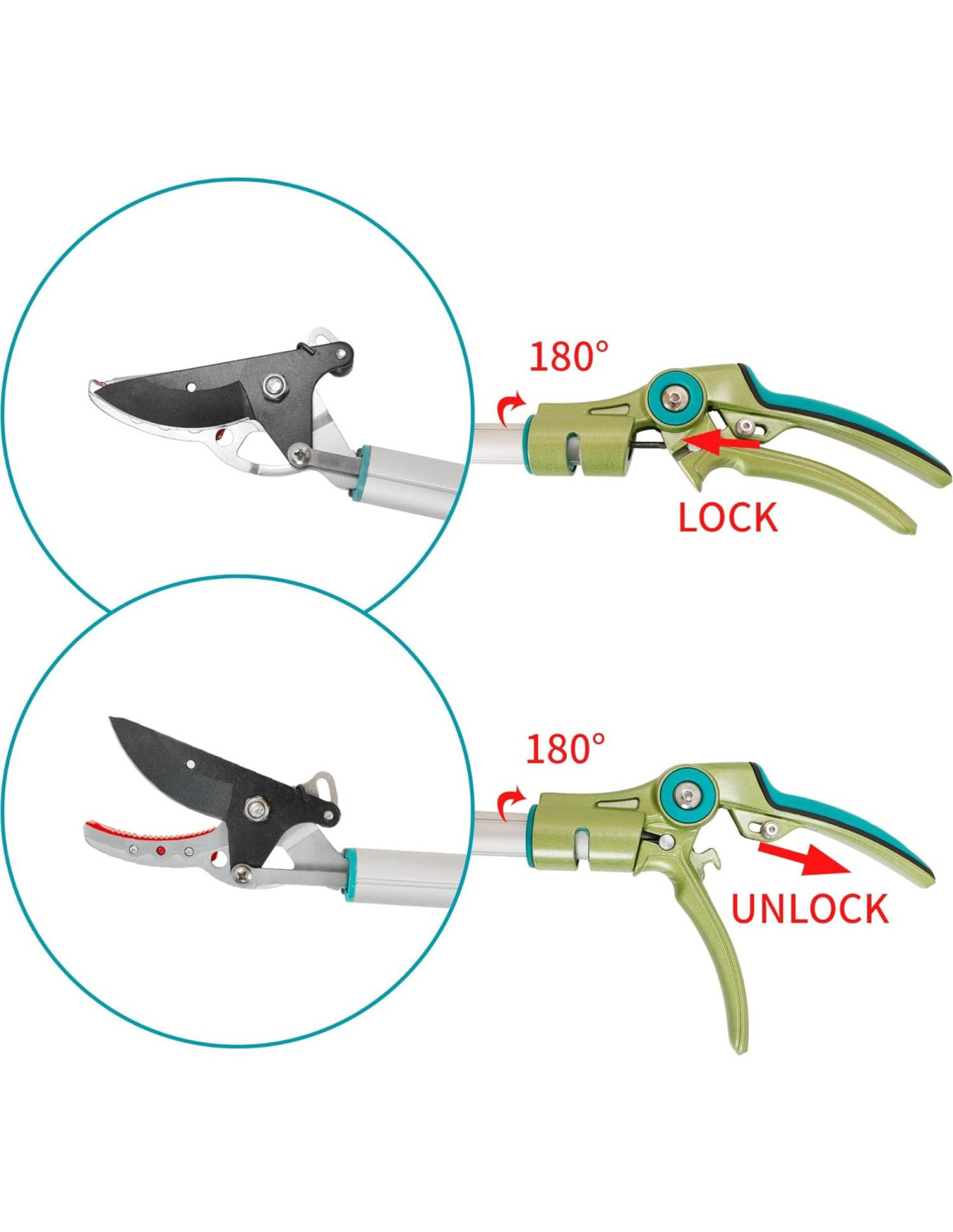 - [Mango Rotatorio de 180 Grados para Corte Versátil] Diseñado como una tijera de jardín de largo alcance con un mango de cortador de mano de largo alcance único, te permite podar desde diferentes ángulos con facilidad. El agarre ergonómico de goma y el soporte de esponja reducen la fatiga, convirtiéndolo en uno de los cortadores de rosas de mango largo más cómodos para uso durante todo el día.
