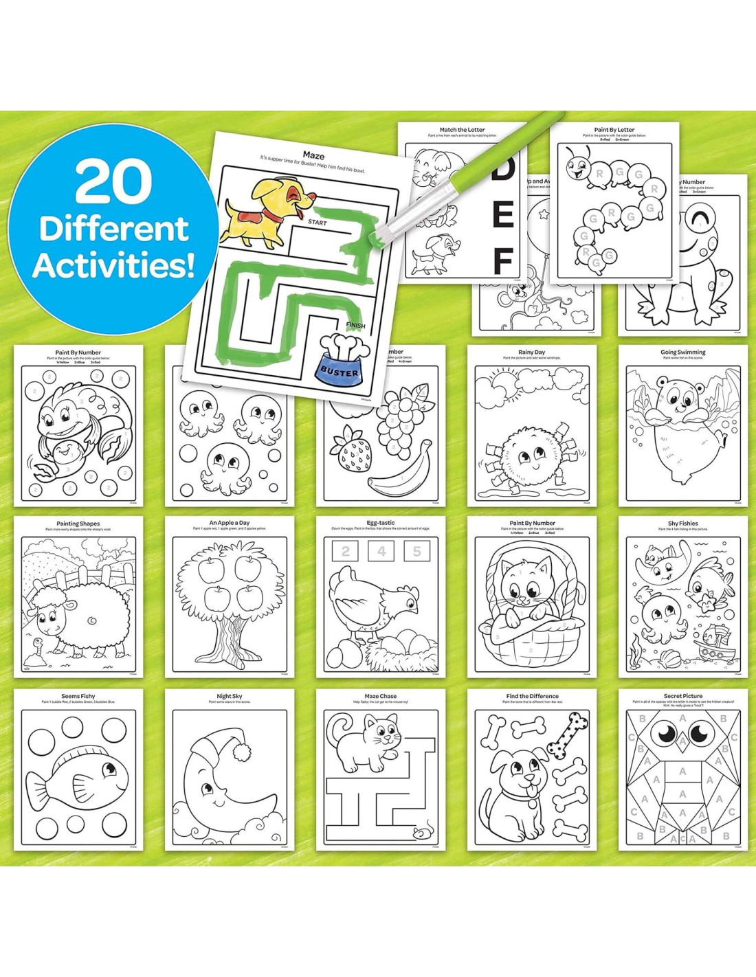 - SET DE PINTURA LAVABLE PARA NIÑOS: Incluye 4 tarros de pintura a prueba de derrames lavables (41.6 ml cada uno) en rojo, amarillo, verde y azul, 20 páginas de actividades divertidas y educativas, y 1 pincel.