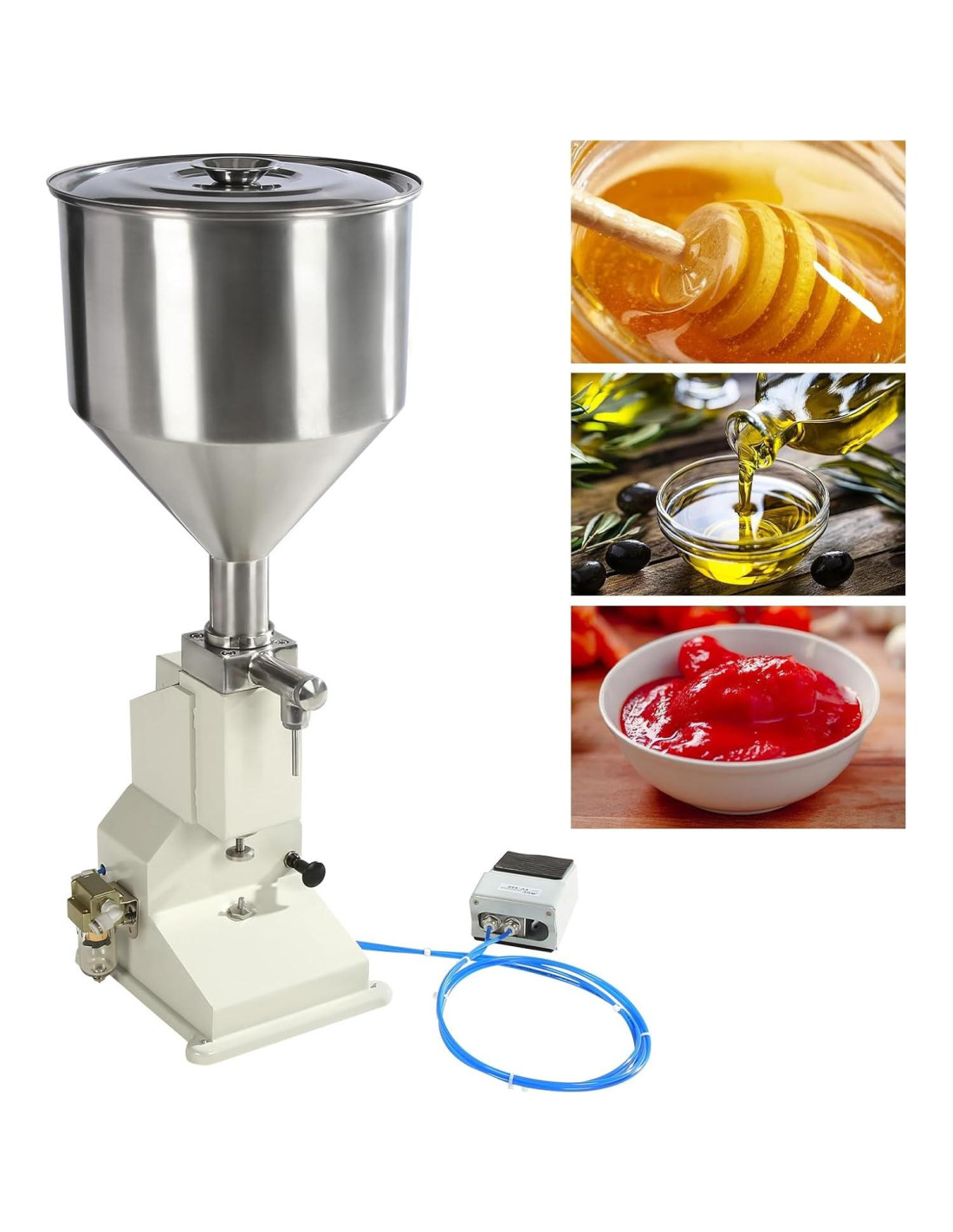 - [Amplias Aplicaciones] El paquete incluye 1* Máquina de Llenado Neumática + 1* Boquilla de Llenado + 2* Llave Hexagonal + 7* Junta de Silicona + 1* Tapa de Bloqueo + 1* Sello de Aceite + 1* Manual en Inglés. Es muy adecuada para líquidos y pastas con excelente fluidez, utilizada ampliamente en la industria farmacéutica, cosmética, pesticidas y otras industrias, y es una opción ideal para el llenado industrial.