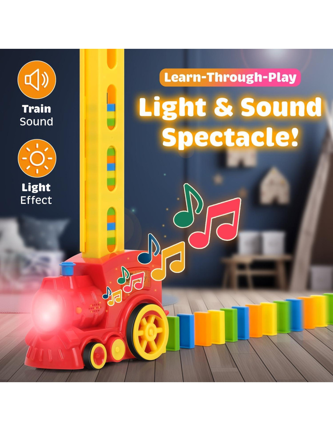 - COLECCIÓN DE DOMINÓ FÁCIL DE CONFIGURAR Y DERRIBAR - Simplemente presionando el cargador rápido de dominó sobre el dominó, tus bloques coloridos se elevan en el soporte y permanecen allí hasta que tu tren los libera mientras viaja por el suelo o la mesa, dejando una fila perfecta de dominós esperando ser derribados.
