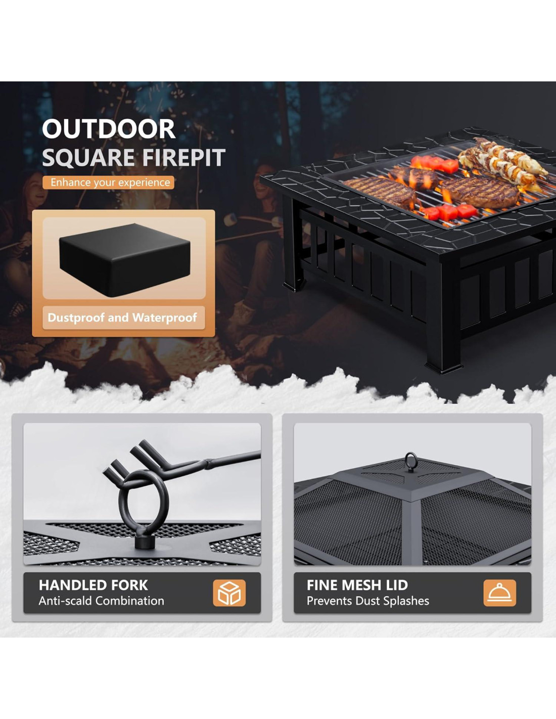 - Fácil de limpiar: el recubrimiento de alta calidad en la superficie hace que la chimenea sea más fácil de limpiar, incluso si la grasa quemada y el polvo están adheridos a la superficie de la mesa de fuego, también puedes limpiarlo mejor