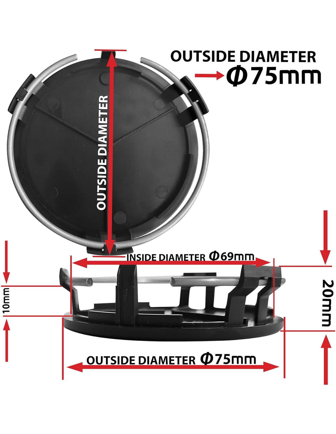 - Contenido de la entrega: Juego de 4 piezas, tapas de centro de rueda de plástico HQ ABS+PC Compatibles con tapas de centro de rueda Mercedes con: Diámetro exterior aprox. 75mm (+ - 0.5mm) - 2.95" (7,49 cm) / Diámetro interior aprox: 69mm (+ - 0.5mm) - 2.71" (6,87 cm);