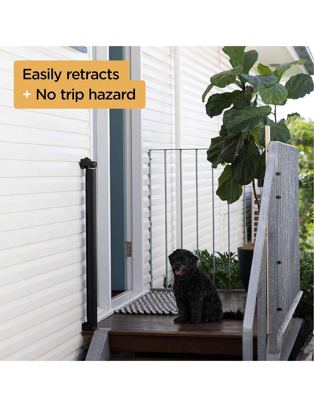 Crea el espacio de vida perfecto para mascotas con la Puerta Retráctil a Prueba de Patas de Hakuna Pets. Esta puerta montada en hardware se expande hasta 71" (180,3 cm) de ancho y tiene una altura de 36.6" (92,9 cm). Bloquea áreas restringidas con esta puerta confiable y resistente, ahorra espacio y se retrae ordenadamente cuando no está en uso o se puede quitar fácilmente de los montajes y almacenar. Ideal para áreas de alto tráfico, el mecanismo de bloqueo de 3 vías permite una operación rápida y fácil con una sola mano. Instala en interiores o exteriores y ajusta para adaptarse a cualquier abertura en la parte superior e inferior de escaleras, pasillos, dentro o fuera de las puertas. Fabricada con malla mejorada, el material tejido resistente a los rayos UV y a las manchas es resistente a las garras de las mascotas, lo que significa que esta puerta está hecha para durar. Mantén a tus mascotas familiares seguras y protegidas sin sacrificar espacio o estilo.