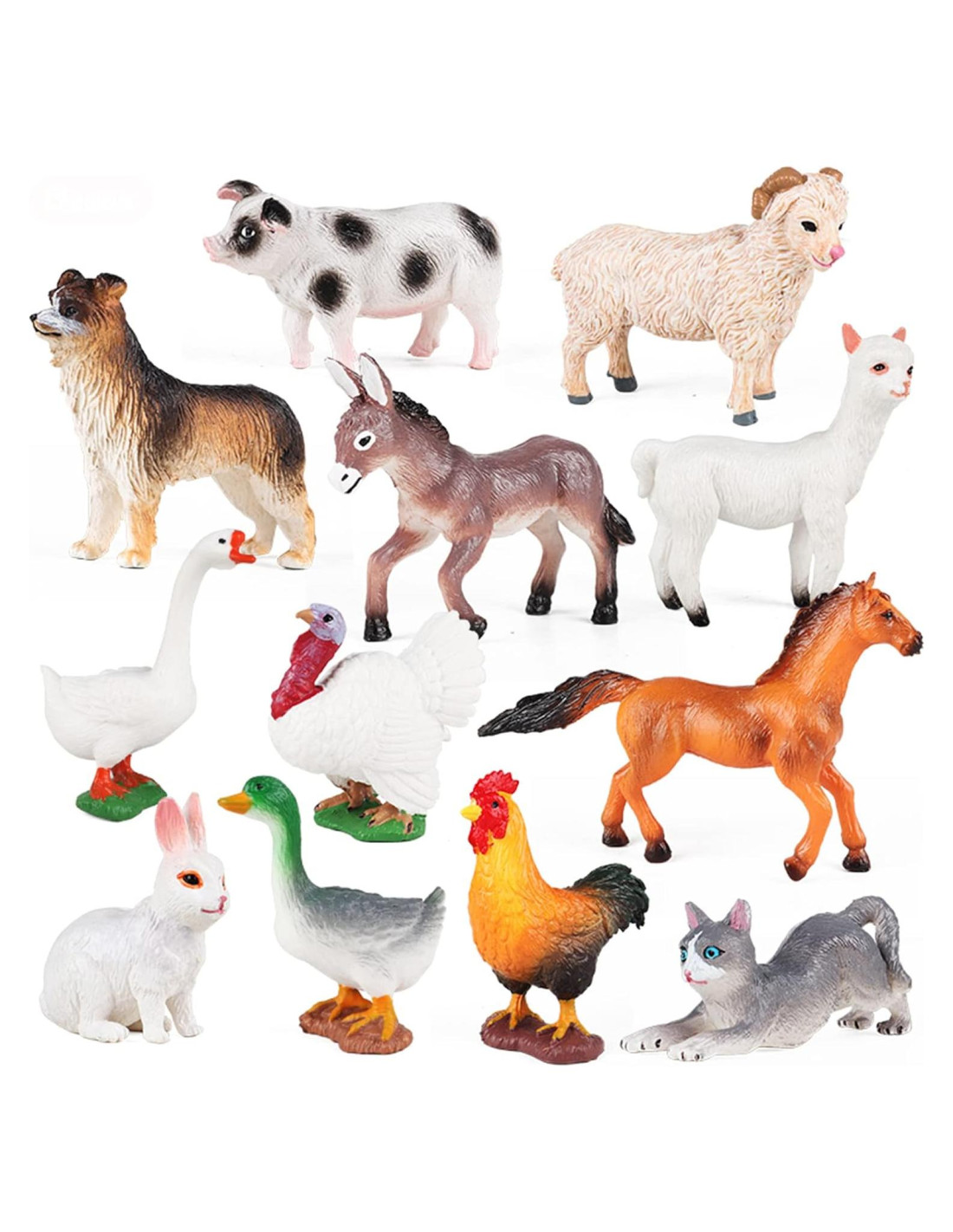 - [Conjunto de Animales de Granja] - Este conjunto de juguetes de animales incluye cerdo, oveja, perro, alpaca, conejo, burro, caballo, ganso, pato, gallo, pavo y gato. 12 figuras de animales de granja en total.