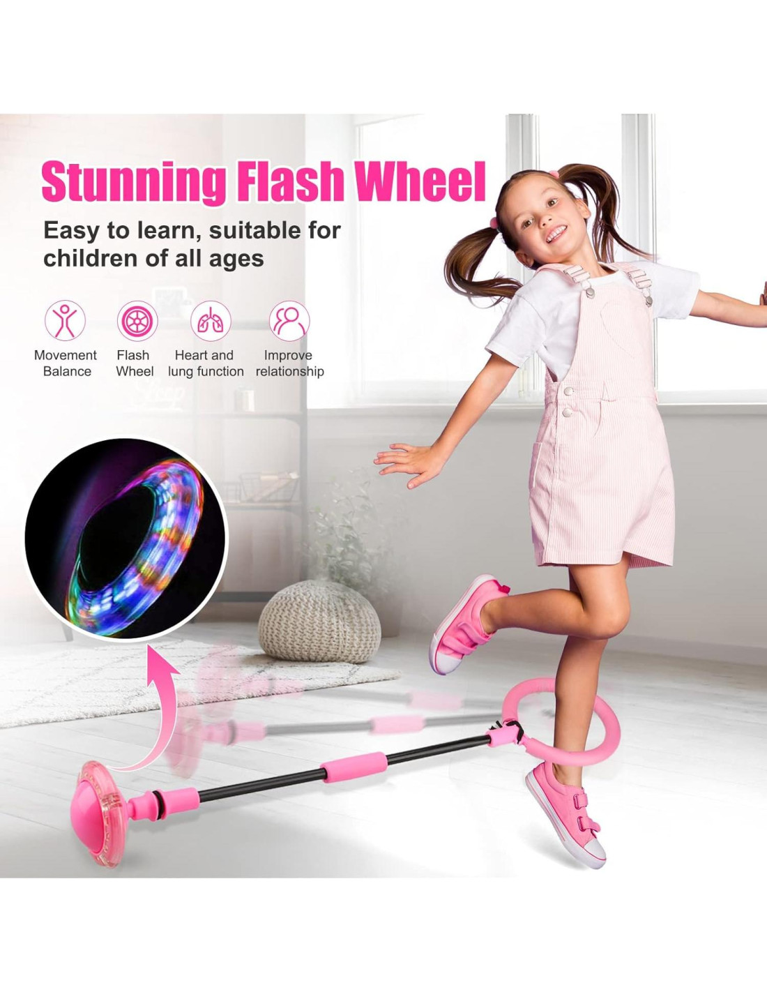 - RUIDO FLASH SUPER COOL: La bola de salto de tobillo tiene una rueda flash de color incorporada, no necesita instalar baterías, durante el movimiento de la bola, utilizando la energía de la inducción electromagnética, producirá automáticamente un deslumbrante espectáculo de luces multicolores