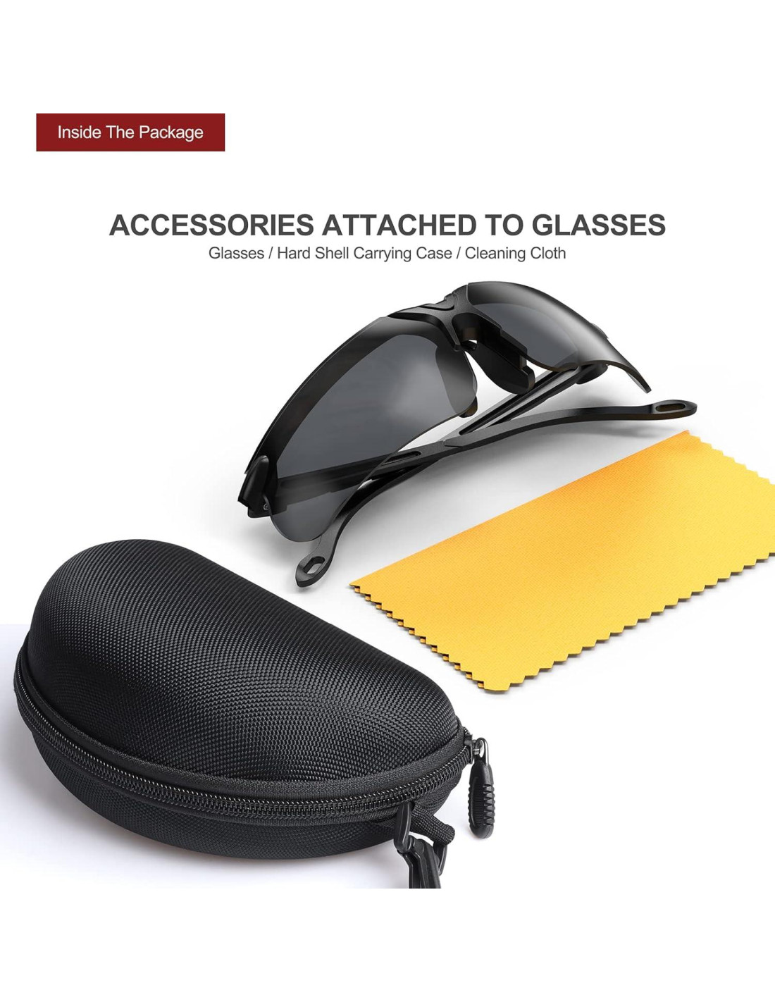 - Viene con un estuche duro con cremallera, fácil de llevar, almacenar y proteger las gafas de seguridad de daños, rayones y polvo.