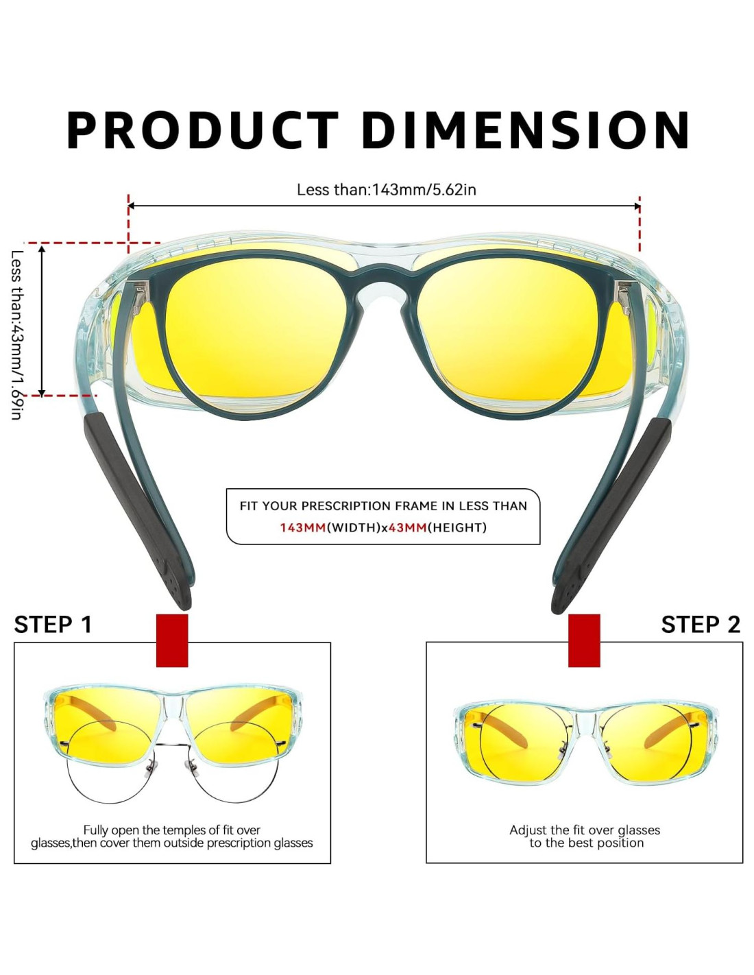 - CÓMODAS DE USAR: Estas gafas para conducir de noche están diseñadas especialmente para aquellos que usan gafas recetadas y se pueden usar fácilmente sobre gafas de miopía/lectura existentes; los usuarios de lentes de contacto o personas con visión normal también pueden usarlas solas