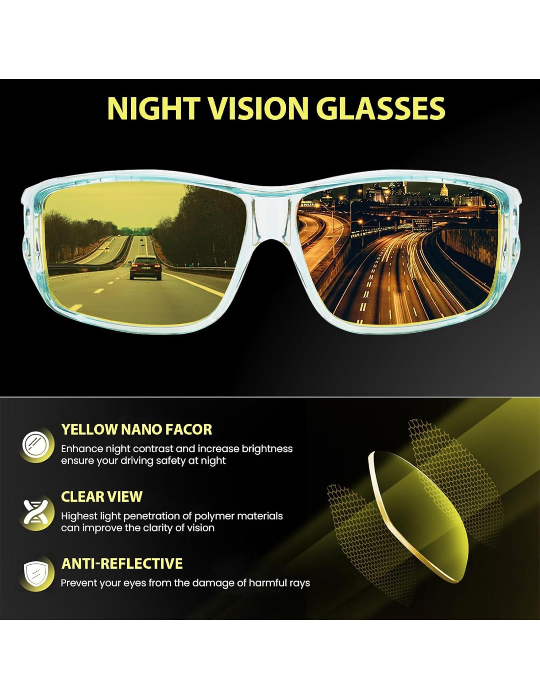- ADECUADAS PARA MUCHAS OCASIONES: Gafas de visión nocturna que hacen un buen trabajo al detener los efectos deslumbrantes del resplandor o destello cuando conduces en condiciones de poca luz, como noche, lluvia, niebla, nublado, crepúsculo, nevado