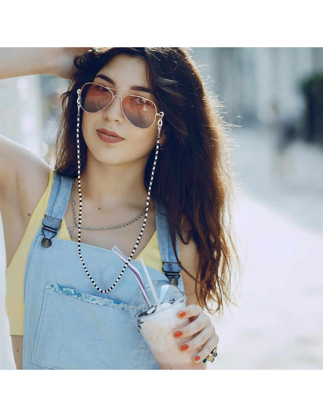 - [Amplia Aplicación] El soporte de cadena de gafas no solo es adecuado para gafas de lectura, gafas recetadas, gafas de sol... Puedes colgar el collar de soporte de gafas en tu pecho o ponértelo en la cabeza, también es adecuado como un collar decorativo de moda para combinar con tus atuendos, haciéndote más atractiva