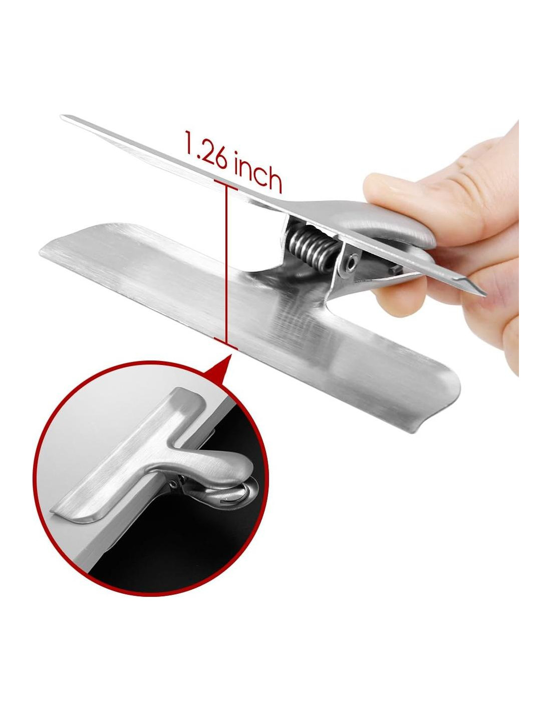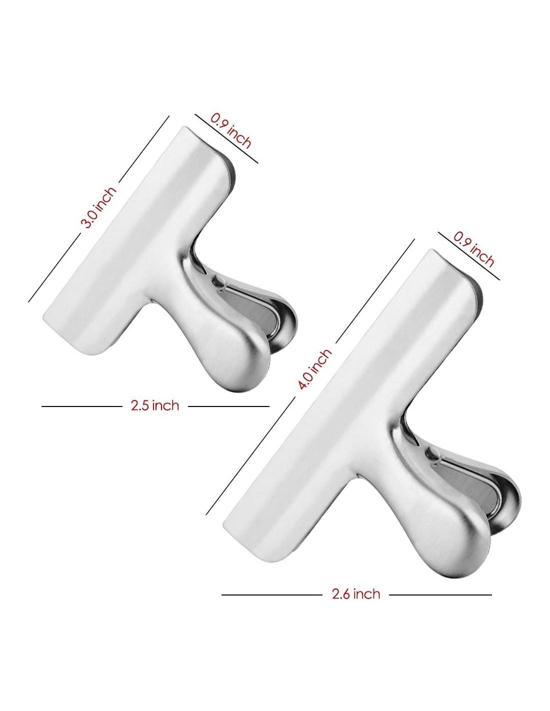 - MATERIALES DE CALIDAD: Hecho de acero inoxidable de buena calidad y grueso, que es resistente a la corrosión, robusto y duradero, no se romperá ni se desvanecerá como otros clips de plástico, perfecto para uso y almacenamiento en la cocina