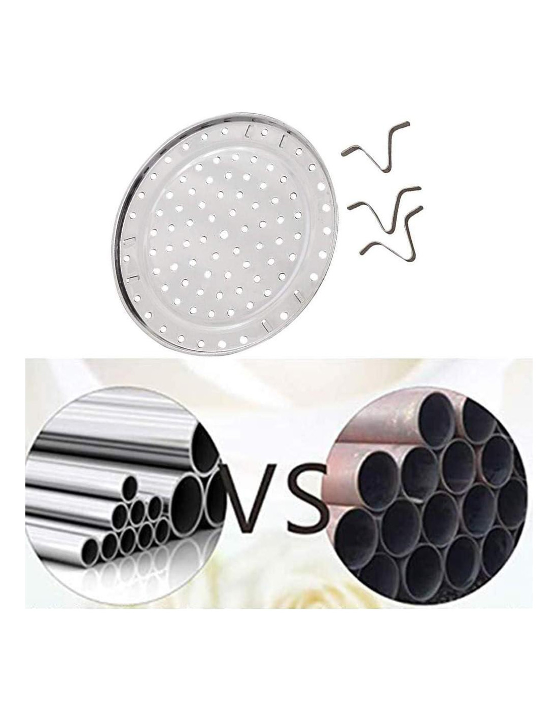 - Acero inoxidable de alta calidad con pequeños agujeros que benefician la distribución uniforme del calor, mantienen los nutrientes y el sabor natural intactos, no se oxida y no se deforma fácilmente, y tiene una larga vida útil.