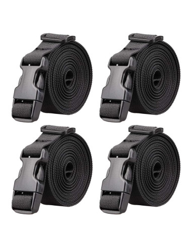 - Correa con Hebilla de Plástico. Más fuerte, resistente al desgaste y más robusta. El paquete incluye: 4 Correas de Empaque (13 pies largos).