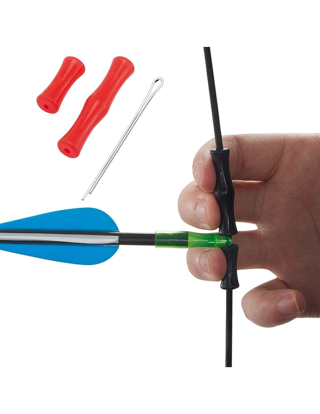 - [Diseño contorneado] : El diseño que se ajusta a tus dedos facilita y hace más seguro el lanzamiento. Protector de dedo y puntos de nock en 1 función, permite el lanzamiento de dedos sin un guante o tab.