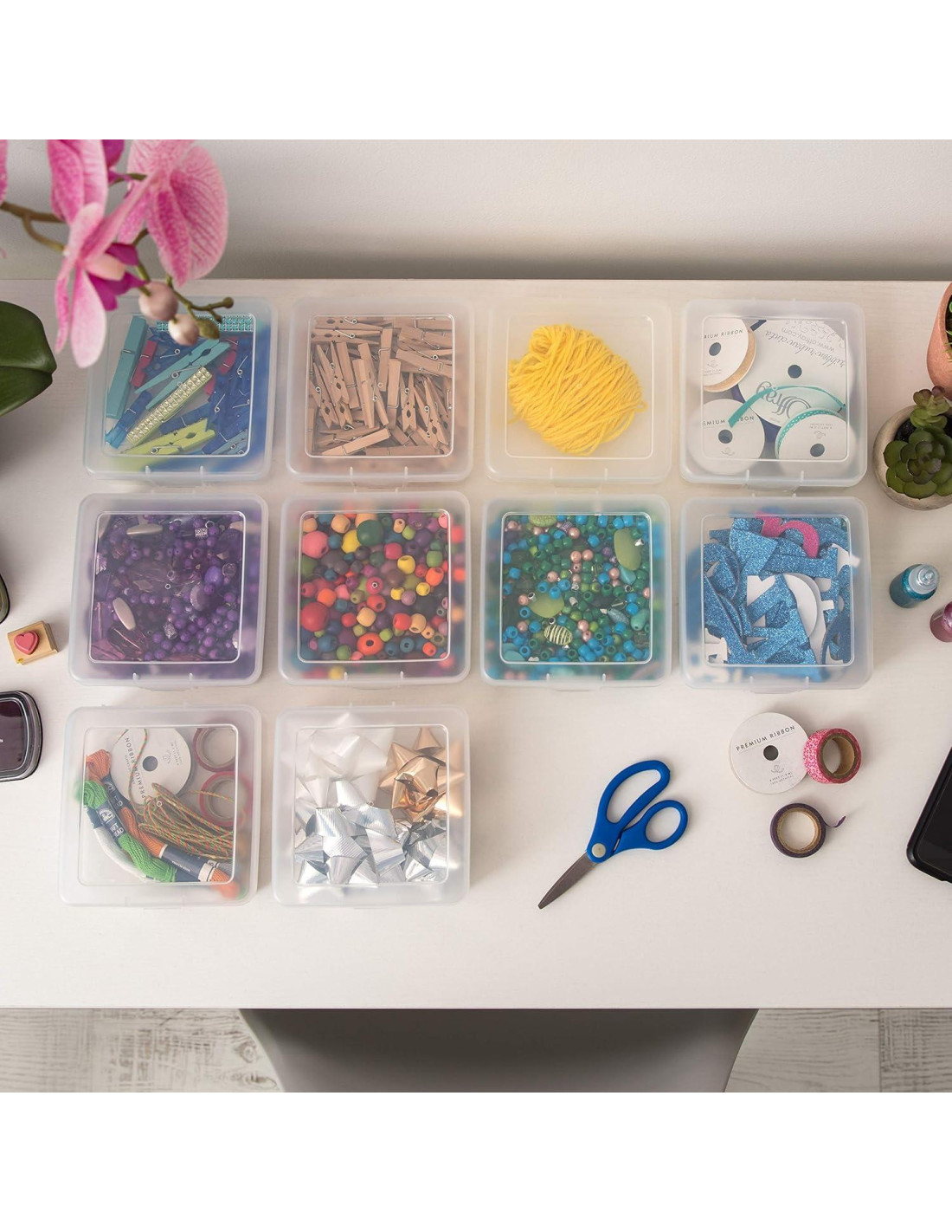Este Paquete de 10 de IRIS USA Caja de Almacenamiento Modular de Plástico Transparente para Suministros de Manualidades con cierre a presión es una solución práctica de organización de almacenamiento para el hogar, garaje, taller, aficiones y oficina. Puedes almacenar pequeñas piezas o accesorios y categorizarlos con cada caja para organizar tu espacio y escritorio. Al etiquetar el lado o la parte superior de tu Caja de Almacenamiento Modular de Plástico Transparente para Suministros de Manualidades con cierre a presión, puedes llevar la organización al siguiente nivel. El diseño Transparente te permite encontrar cualquier artículo almacenado instantáneamente desde cualquier ángulo. El cierre seguro cierra de manera segura la Caja de Suministros de Manualidades, separando el interior del exterior. Cualquier arte, afición, suministros de cocina, herramientas está a salvo del polvo y líquidos y perfectamente organizado. Gran uso para papelería, documentos, bolígrafos y crayones, herramientas pequeñas, cartulina, carpetas de embosado y suministros diversos. Tamaños pequeño, mediano y grande disponibles.