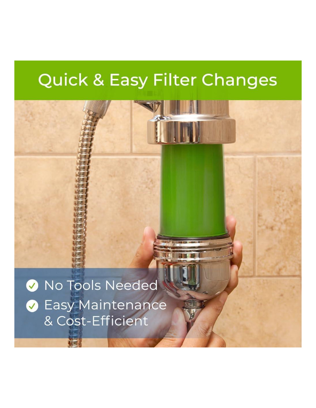 - Beneficios del producto: Reduce el 96.6% de cloro para 10,000 galones o hasta 6 meses por cartucho de filtro. Los beneficios incluyen cabello más suave, piel más lisa, reducción de irritación ocular, tratamientos de color de cabello de mayor duración...