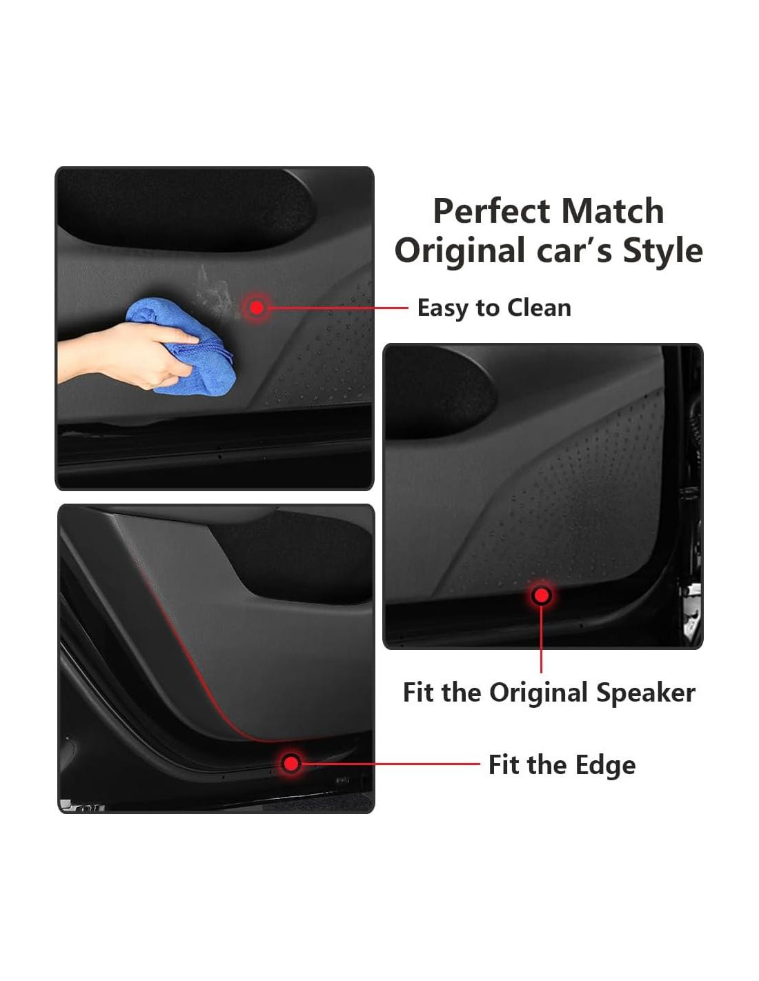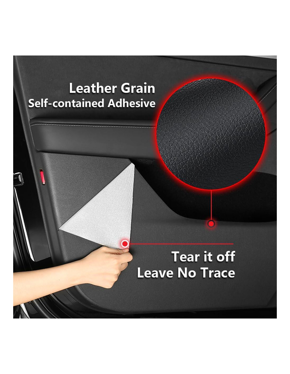 - [Gran Protección] No solo protege la puerta de tu auto de rasguños, marcas, astillas, manchas difíciles de limpiar y huellas, sino que también viene en colores negro mate premium para darle a tu interior un aspecto completamente nuevo. La forma diseñada de acuerdo con los datos originales del auto no afectará el uso de varios elementos en el área de la puerta.