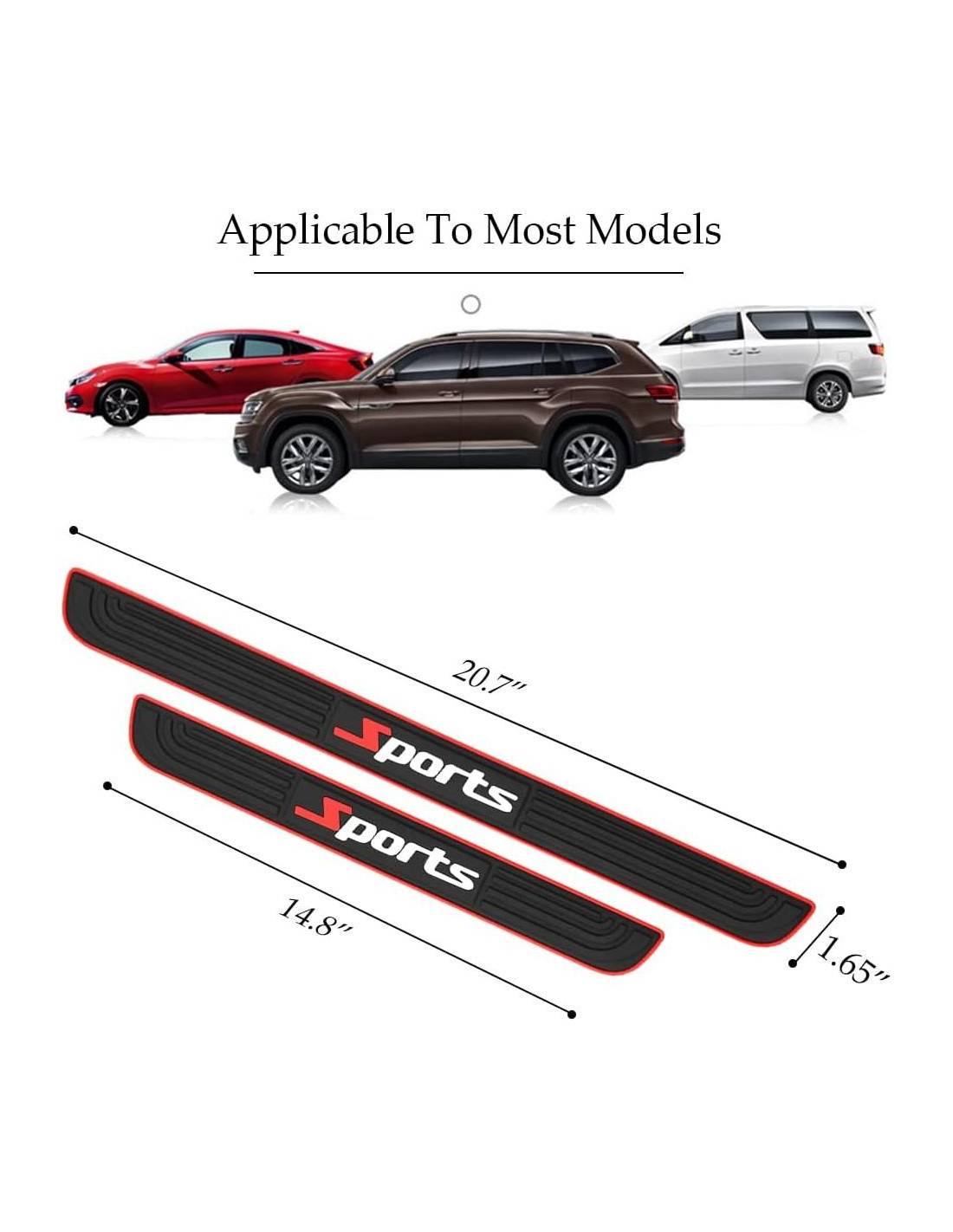 - [Ajuste universal] : El paquete incluye 2 protectores de placa de umbral de puerta delantera de 20.67 x 1.65 pulgadas (52,4 x 4,2 cm); 2 protectores de placa de umbral de puerta trasera de 14.76 x 1.65 pulgadas (37,5 x 4,2 cm), es un ajuste universal para la mayoría de los modelos como sedanes, SUV, MPVS y vehículos comerciales. Por favor, verifique el tamaño antes de la compra para asegurarse de que nuestros protectores de panel de puerta de coche se ajusten a su coche, gracias