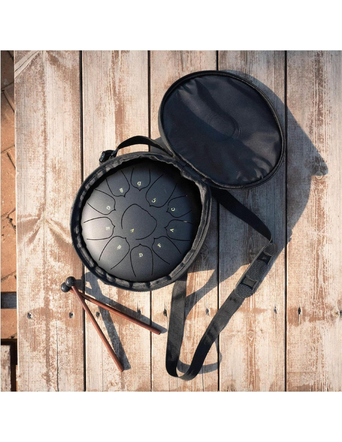 - Una bolsa de transporte ligera y cómoda asegura mayor comodidad para tus viajes. Está diseñada para ajustarse perfectamente al tambor de tanque. Lleva tu tambor de acero en tus viajes y ten acceso completo a él en cualquier momento y lugar.