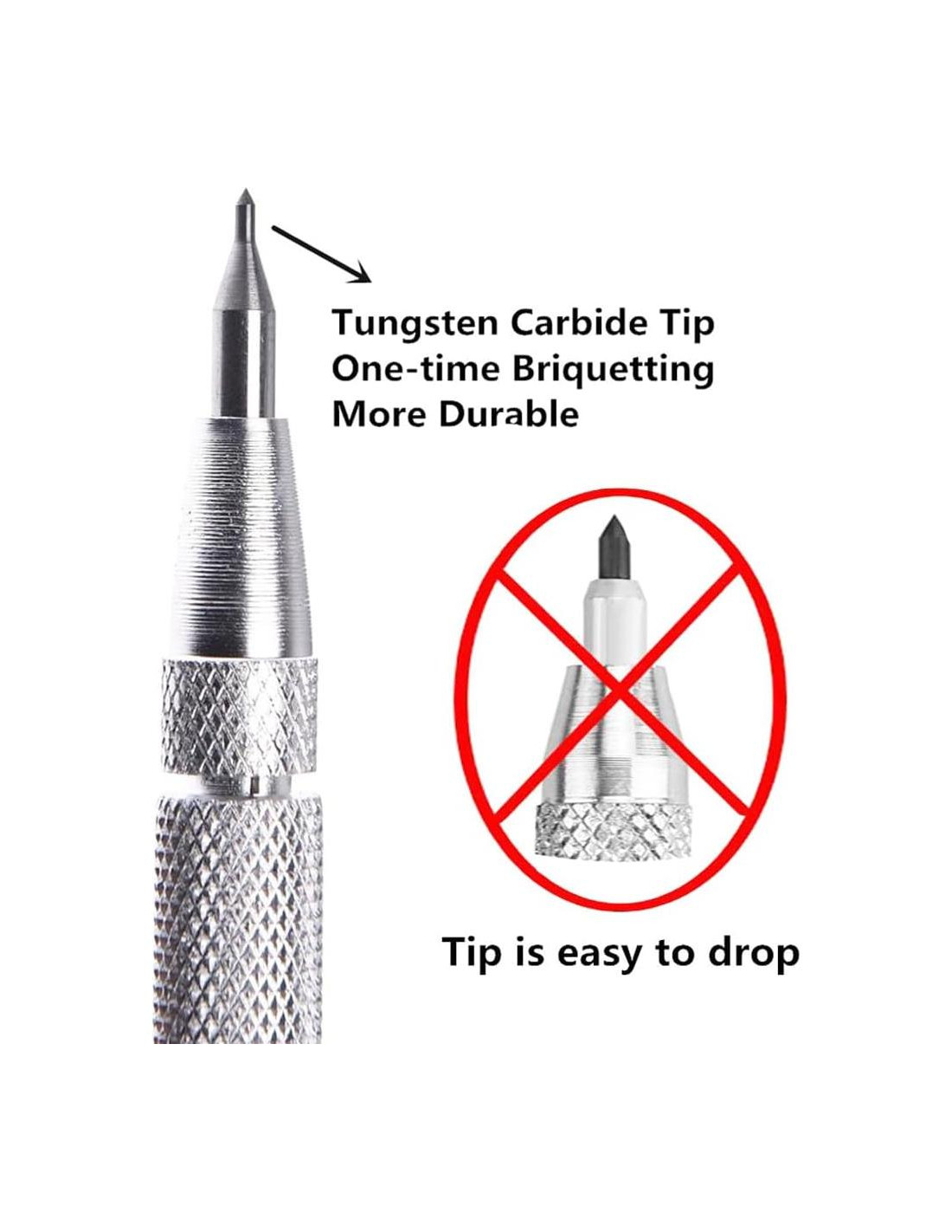 - Herramienta de scribe de metal con punta de carburo de tungsteno de 2 piezas con 10 puntas de marcado de repuesto gratis, cada punta de bolígrafo viene con una funda protectora.