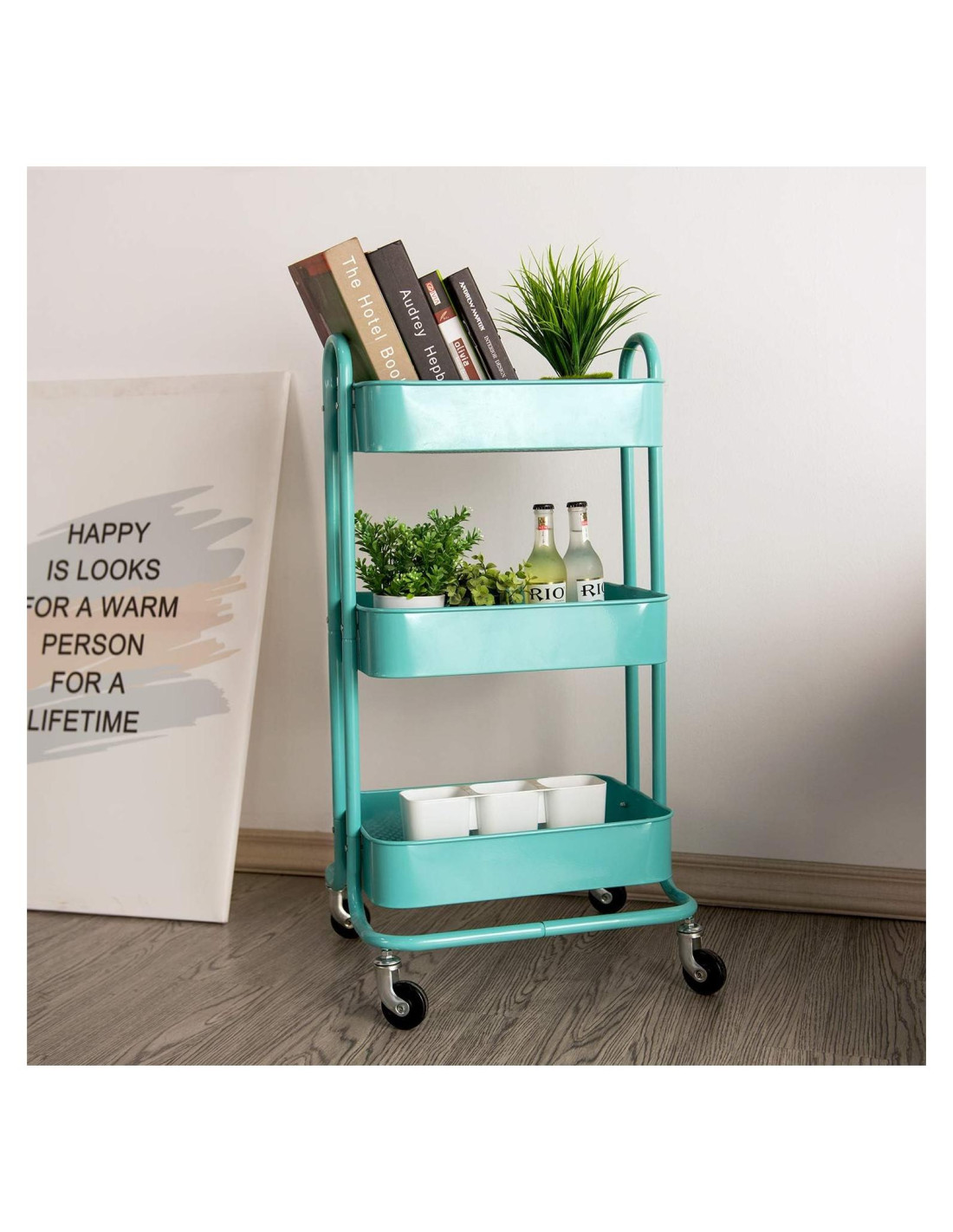 Carro de Almacenamiento Rodante de Metal de 3 Niveles Bestmart INC para Oficina, Estudio, Cocina, Baño (Azul)
