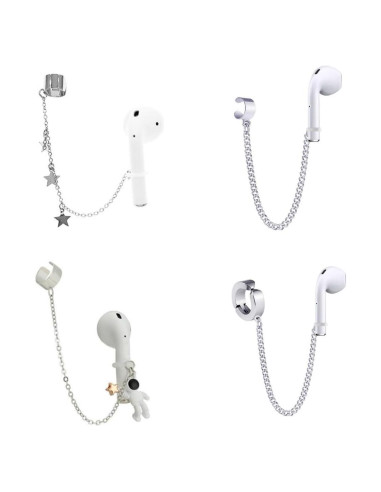 Material: Acero inoxidable Color: Plateado Adecuado para: Airpods 2 pro y la mayoría de los auriculares inalámbricos Paquete incluye: 4 Pares de Correas Antipérdida para Auriculares