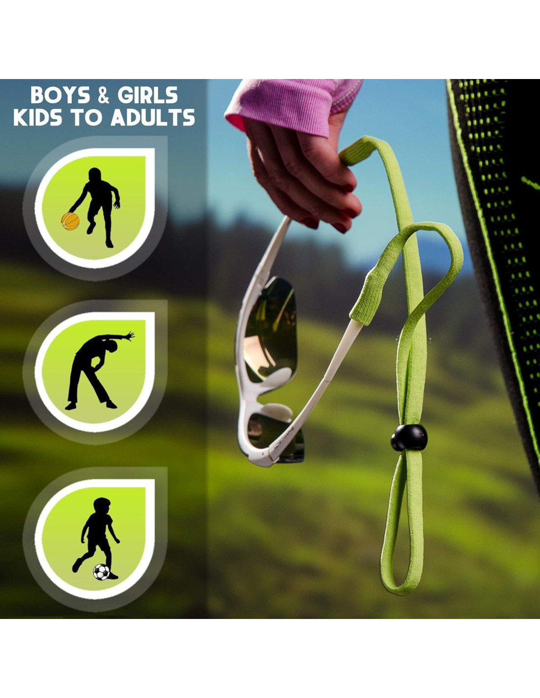 - SE AJUSTA A NIÑOS Y ADULTOS - Nuestras correas ajustables para gafas son adecuadas tanto para niños como para adultos, proporcionando un agarre seguro para gafas de sol y gafas ópticas. Mantén tus gafas cómodamente al alcance en tu pecho, alrededor de tu cuello o sobre tu cabeza.