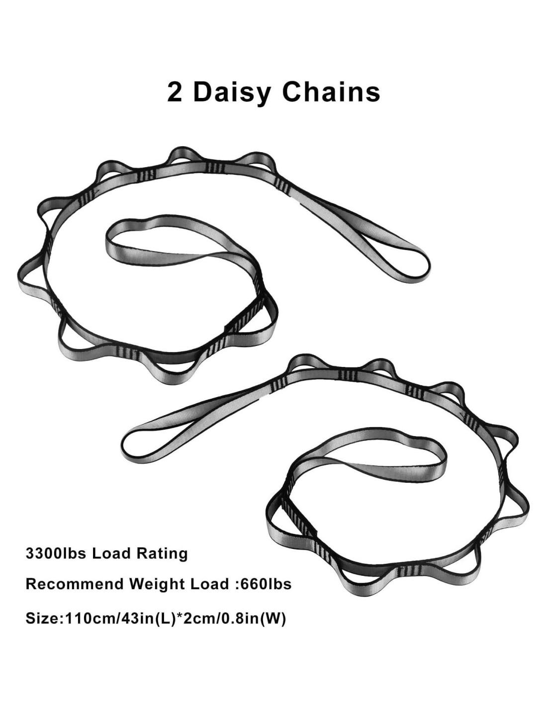 - Hay muchas hamacas de yoga aéreo en el mercado, pero nuestra hamaca de yoga aéreo básica está hecha de material y hardware de calidad certificada. 1 x hamaca aérea elástica de 6.5 yardas, 2 x mosquetones de acero con bloqueo de tornillo (25KN), 2 x cadenas Daisy de nylon reforzado de 3 pies (23KN). Carga máxima calificada para 2,000 libras (907.18 kg) de carga dinámica. Las cadenas Daisy y los mosquetones están certificados según los estándares de escalada.