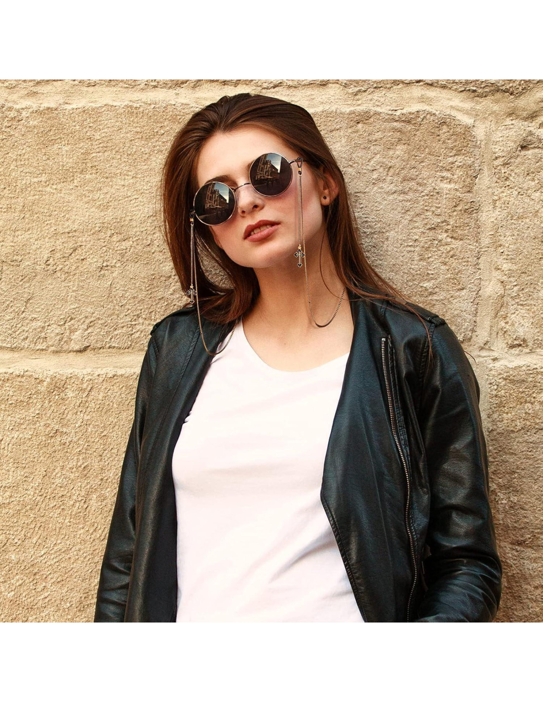 - Duradero para usar: la cadena de gafas de sol está hecha de material de aleación confiable y anillo de silicona, después de un proceso de electrochapado que preserva el color, lo que no es fácil de romper ni aflojar, la superficie es suave, blanda y ligera, lo que no dañará tu piel ni atrapará tu cabello