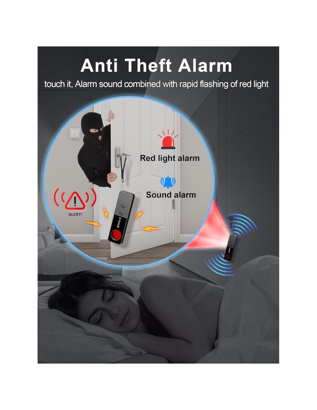 - Antirrobo por Vibración: Configura este detector de cámaras ocultas en modo de detección por vibración y cuelga el detector de cámaras en la puerta de la habitación del hotel. Una vez activado, la alarma sonora y luminosa funcionará simultáneamente, previniendo efectivamente el robo y la intrusión ilegal. El detector de cámaras espía es la herramienta perfecta para proteger la privacidad y seguridad cuando viajas o sales.