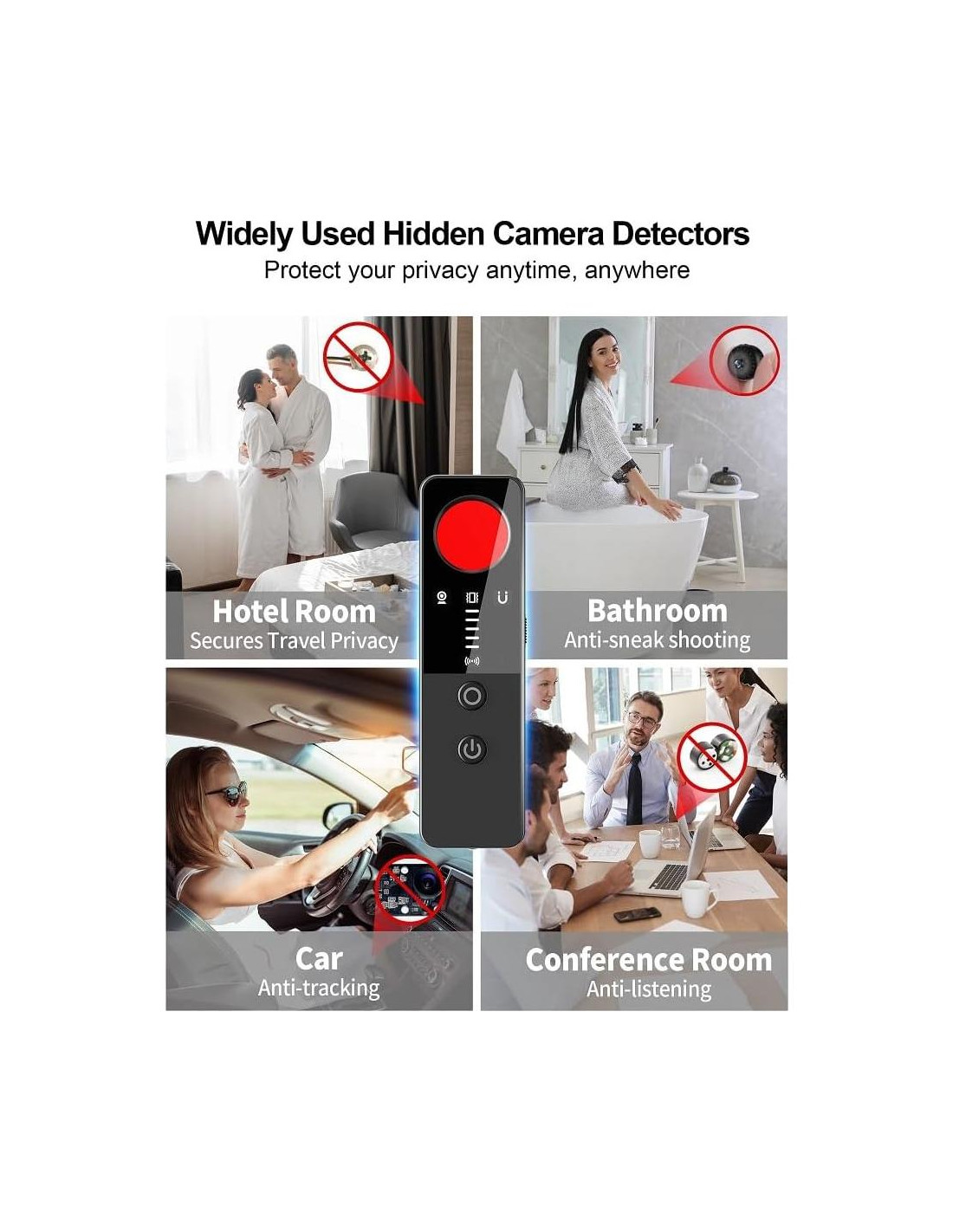 - Operación Simple: El detector de bugs y cámaras ocultas es rico en características pero fácil de usar. ¡Es lo suficientemente fácil para principiantes! Por favor, consulta el video instructivo o manual antes de usar. El detector de cámaras ocultas es ligero, portátil y fácil de llevar. Usa este detector de cámaras espía en varios lugares como salas de conferencias, hoteles, oficinas, air bnb y espacios públicos para salvaguardar tu privacidad.